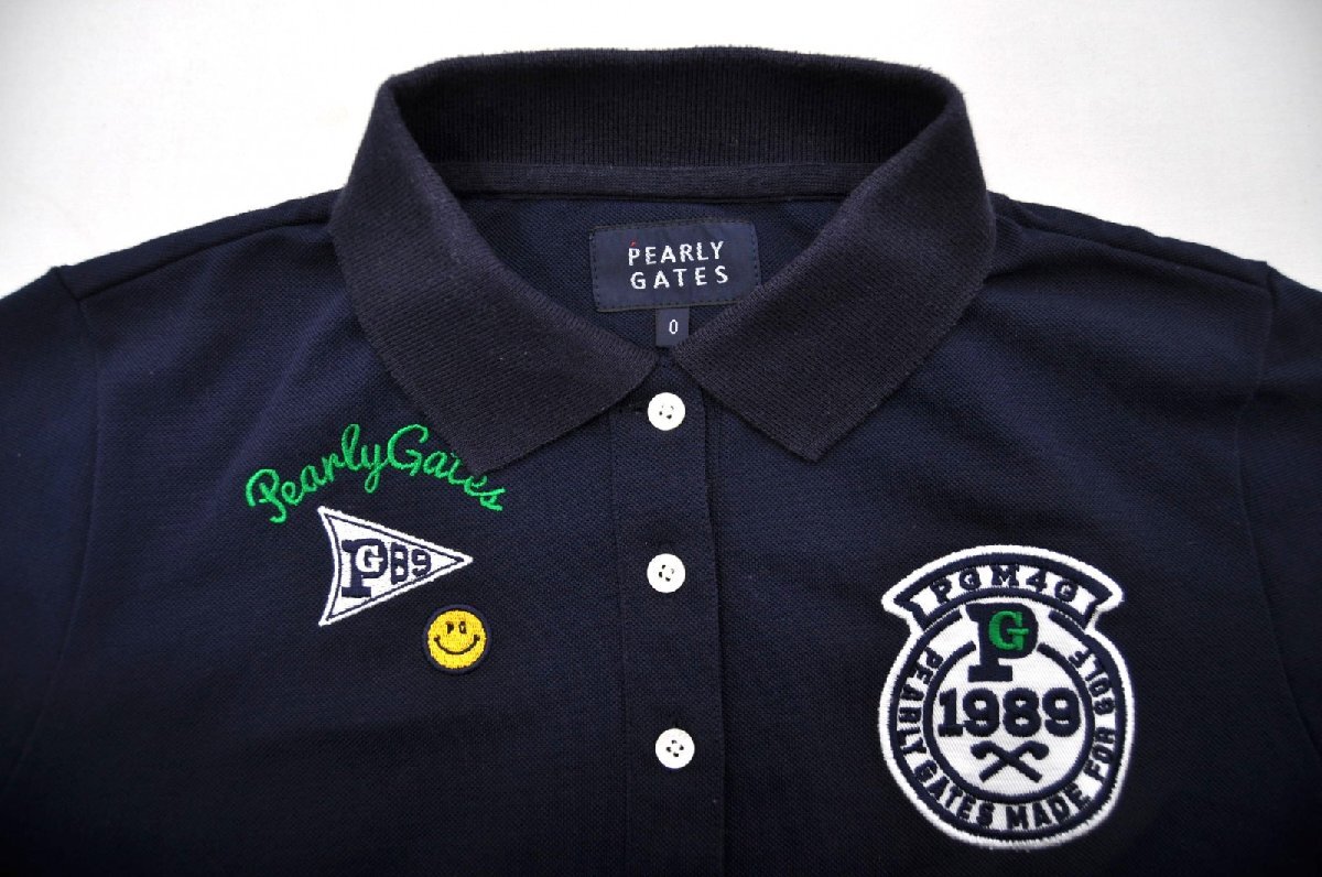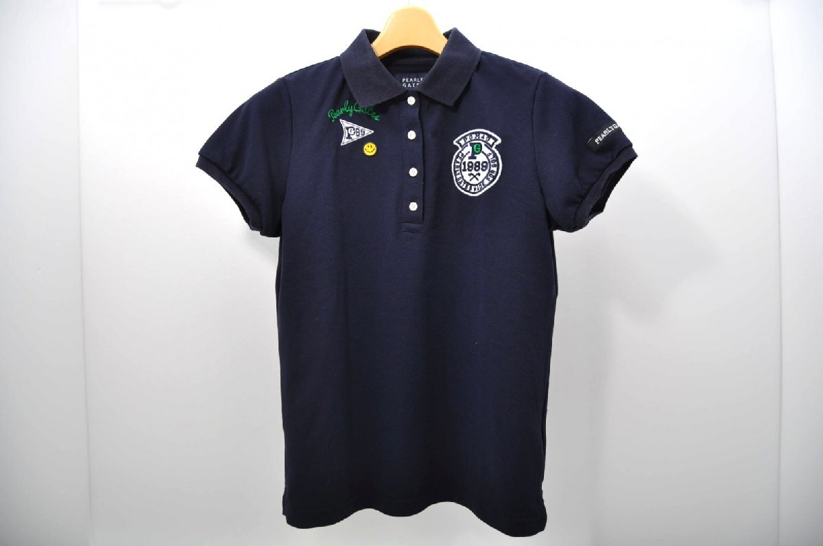 coco 中古 パーリーゲイツ PEARLY GATES レディース 半袖ポロシャツ 0(S) 紺 ネイビー ネコパケ発送可 80783
