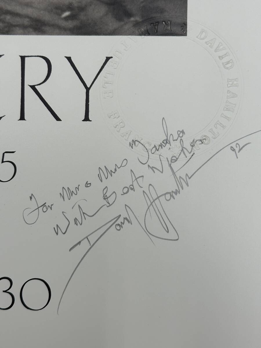 写真家であり映画監督のハミルトンのオフセットポスターです。エンボスと本人のサインが写真部右下にあります。 サイン内に′92と記載があるのでそれくらいの時期に刷られたポスターかと思います。 裏面上部にシールが付いています。