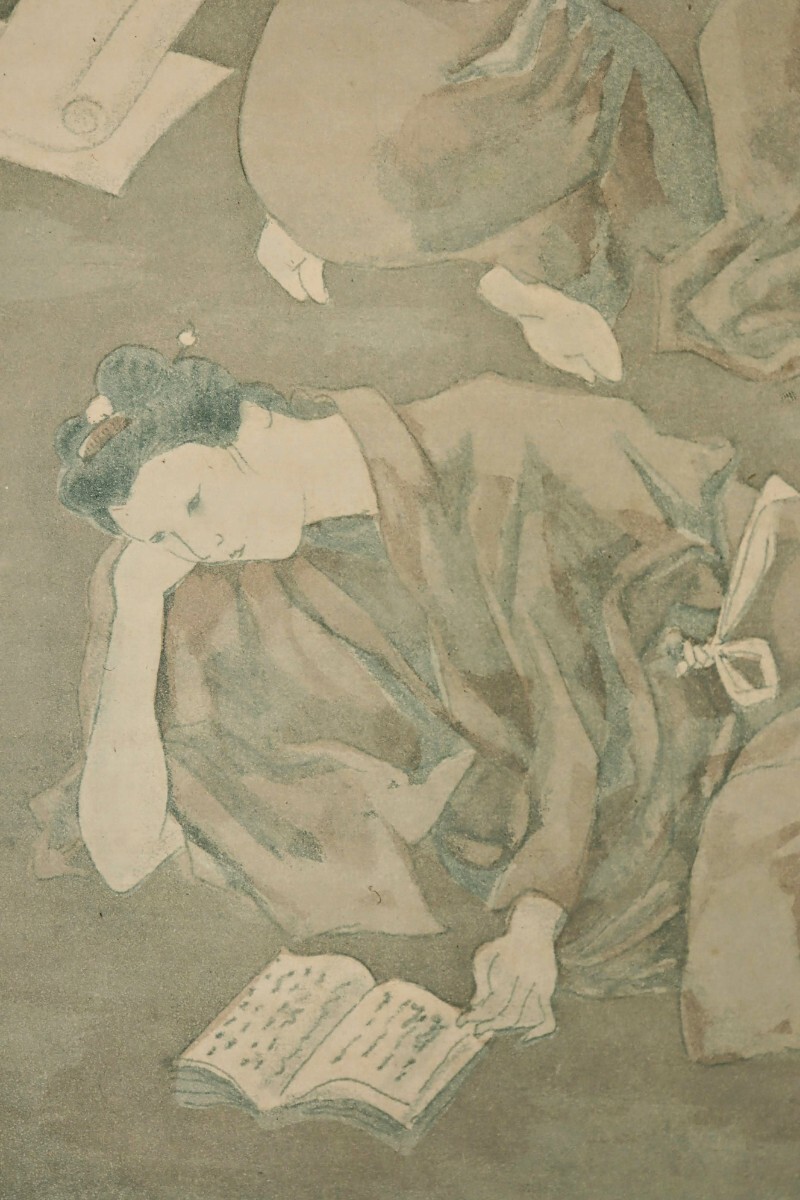 真作 藤田嗣治 1926年銅版画「お梅が三度目の春 より読書」画寸 14×19cm ピエール・ロティの挿絵 淡いモノトーン 細やかで丁寧な力作 9826