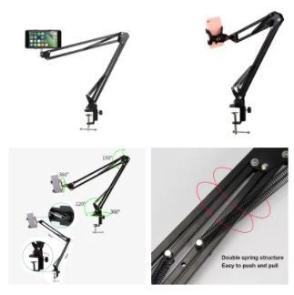 スマホスタンド ライブ 通話 テレビ電話 リモートワーク 会議 ロングアーム 金属クランプ 回転スタンド ZCL388