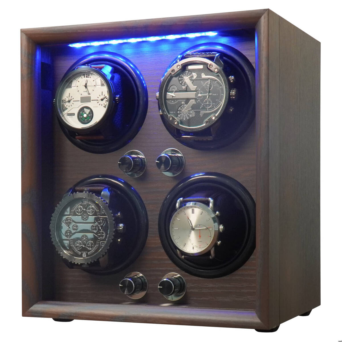 このワインディングマシーンは、最大4本の腕時計を自動で巻き上げる高級木製ケースです。