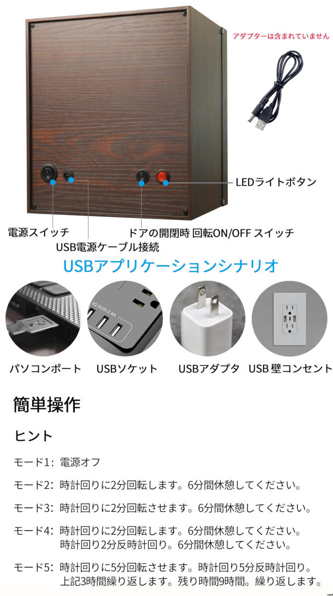 回転モード: 時計回り、反時計回り、交互回転、オフスイッチ