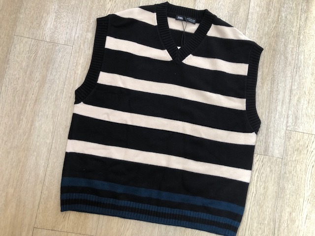 ★新品ZARAザラボーダーVネックニットベスト140★黒白送料\185