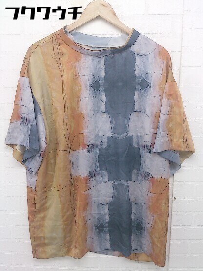 ◇ ガスヴァンサントみたいに蒼い 総柄 スリット  五分袖 カットソー サイズF グレー ブラウン レディース