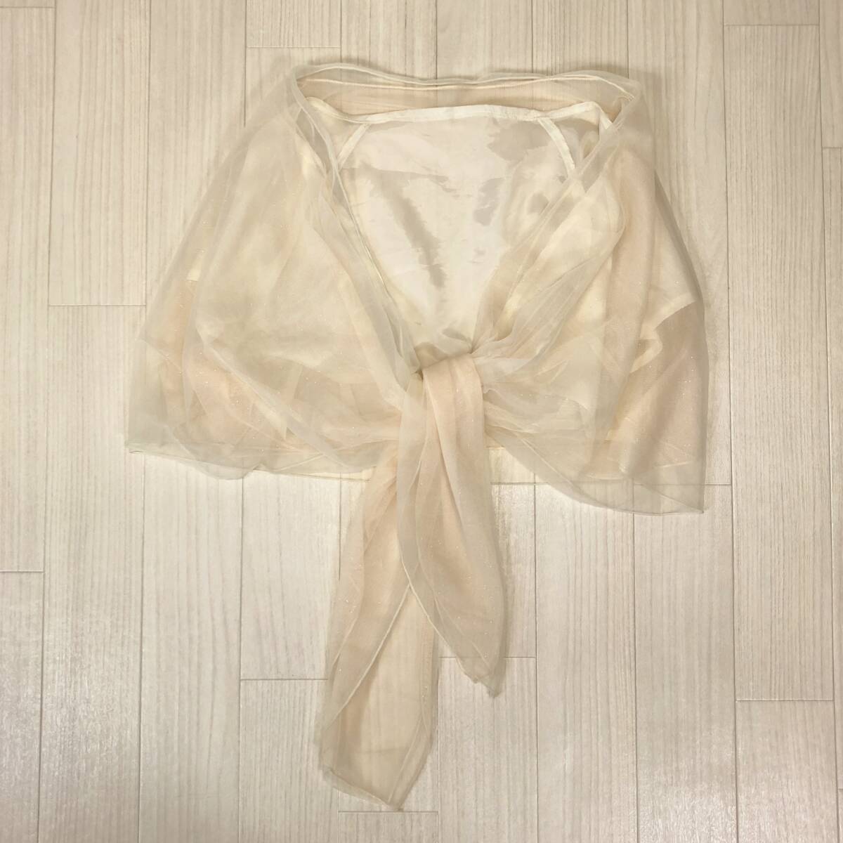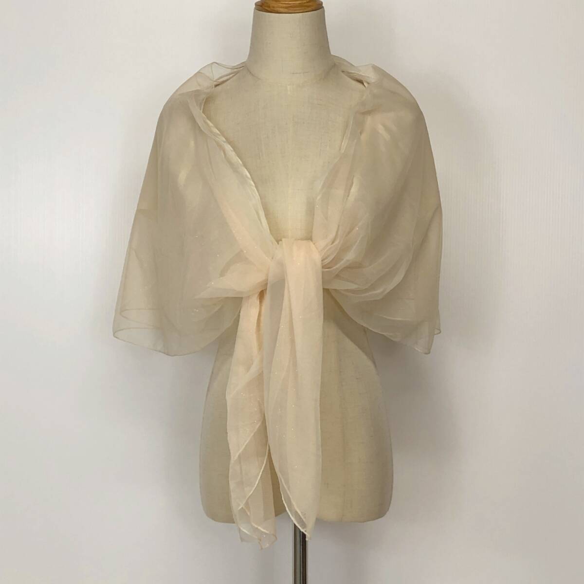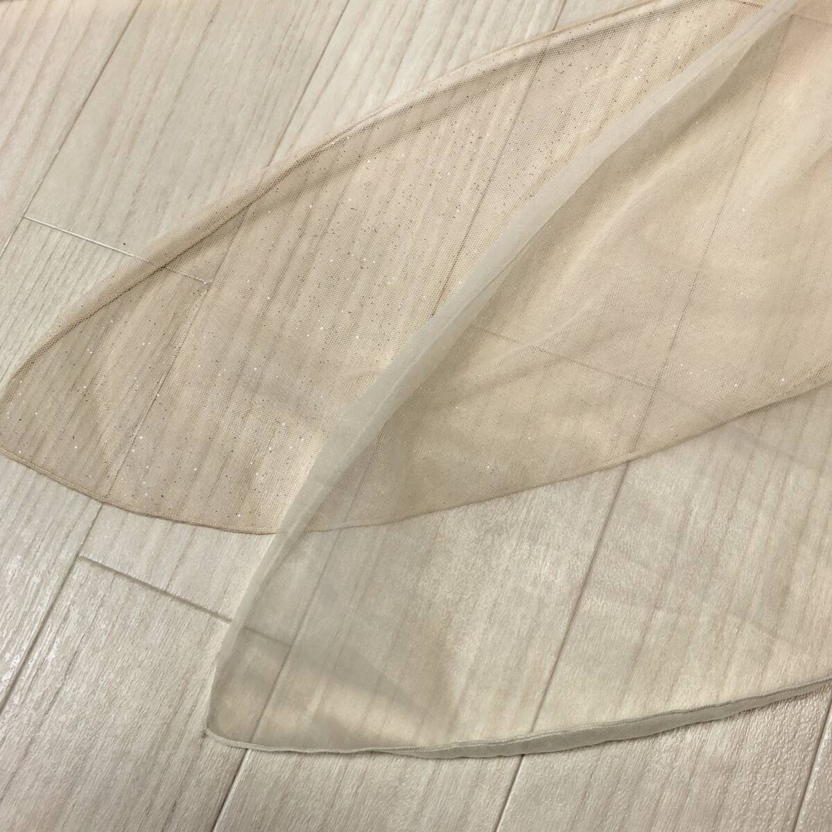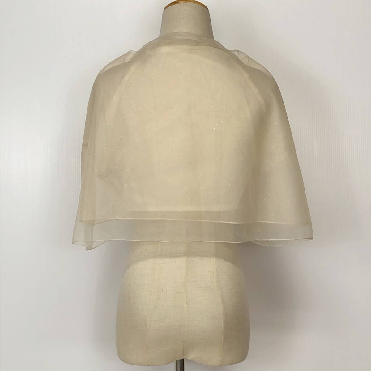 Y1268 美品 LD prime エルディープライム レディース チュールショール 裏地あり ラメ入り チュール二重 キラキラ F クリーム色 おしゃれ