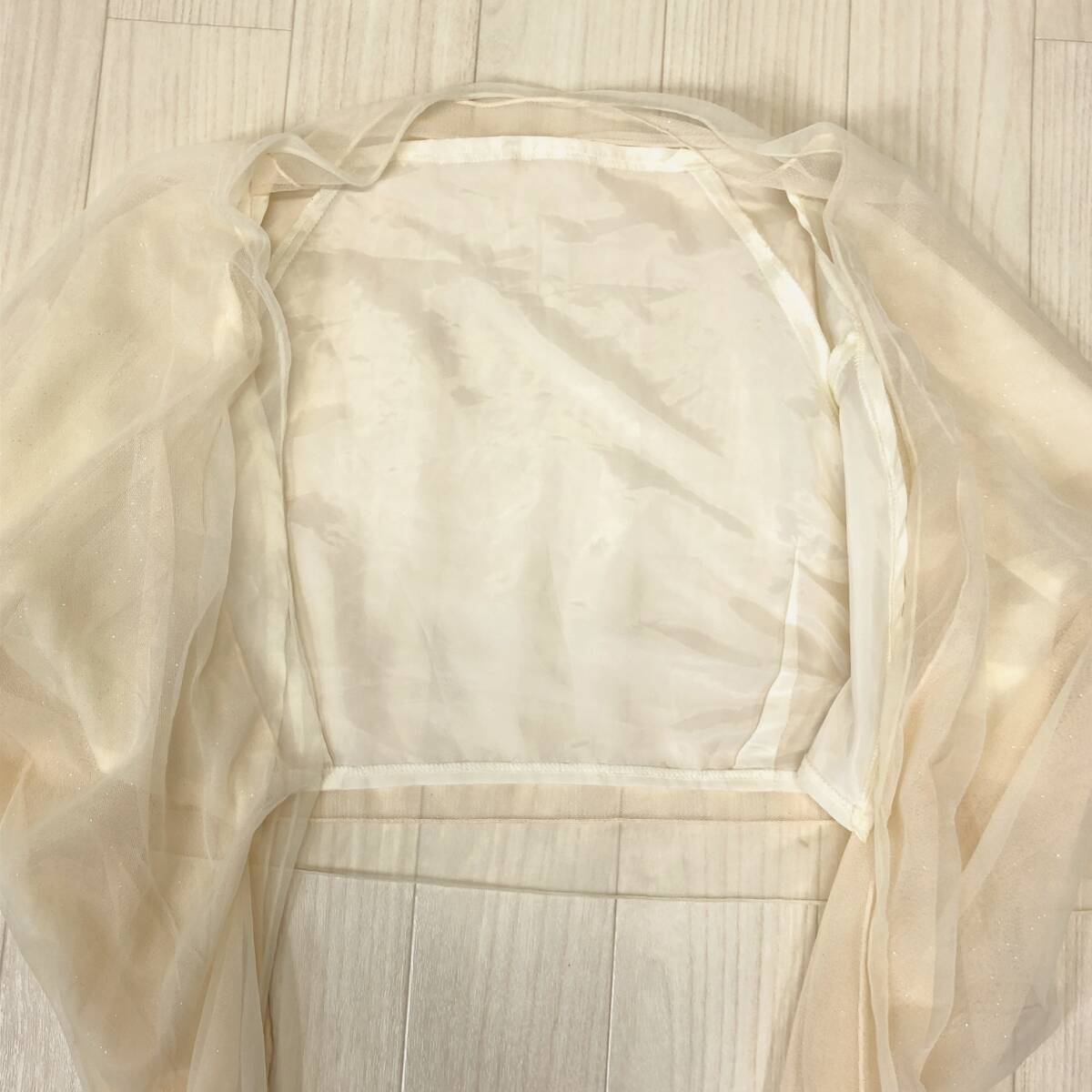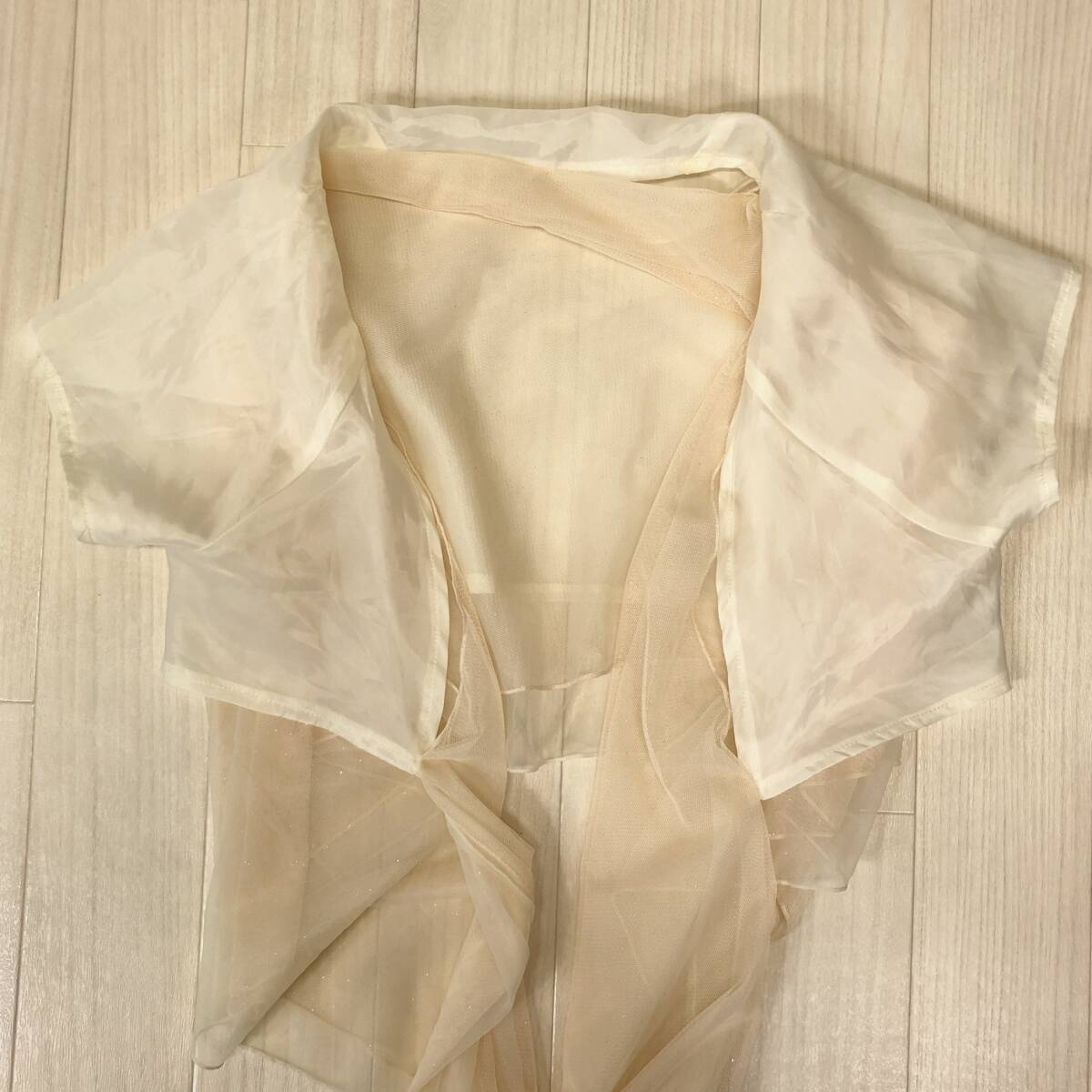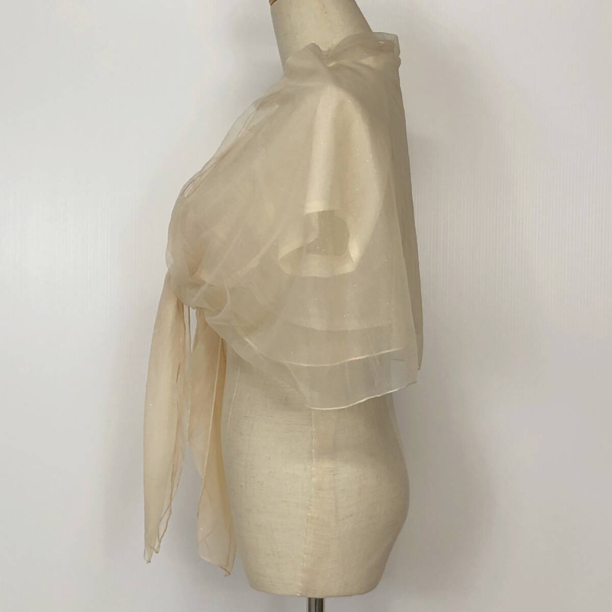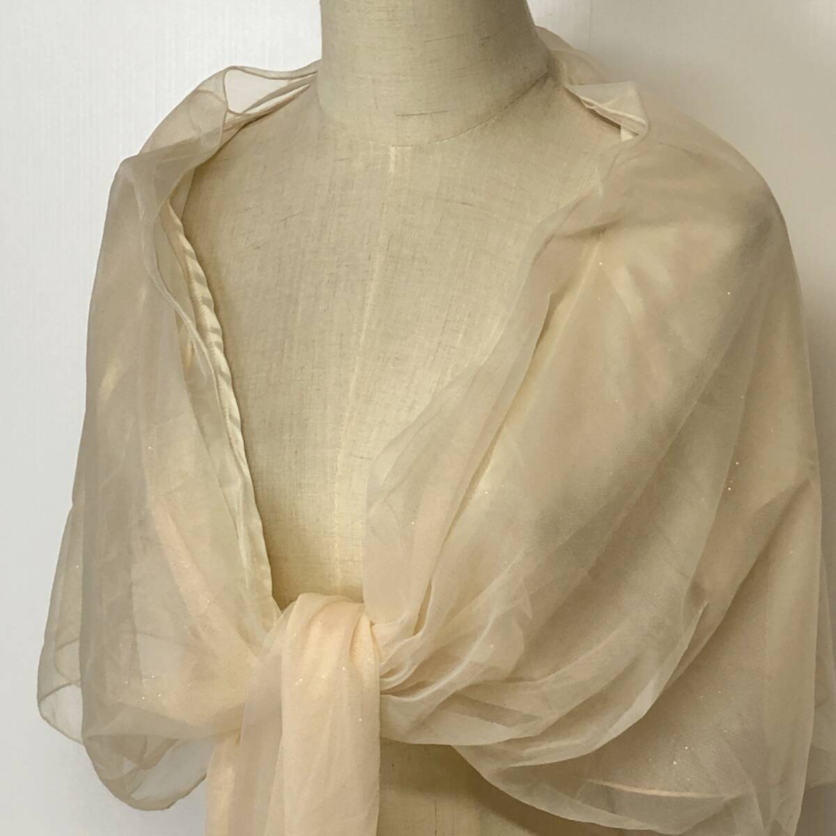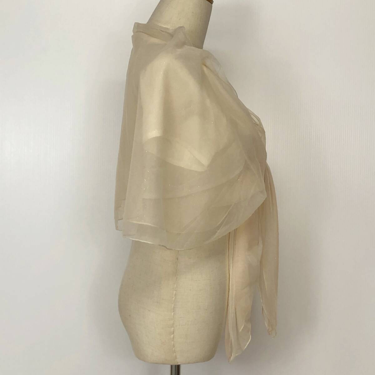 Y1268 美品 LD prime エルディープライム レディース チュールショール 裏地あり ラメ入り チュール二重 キラキラ F クリーム色 おしゃれ