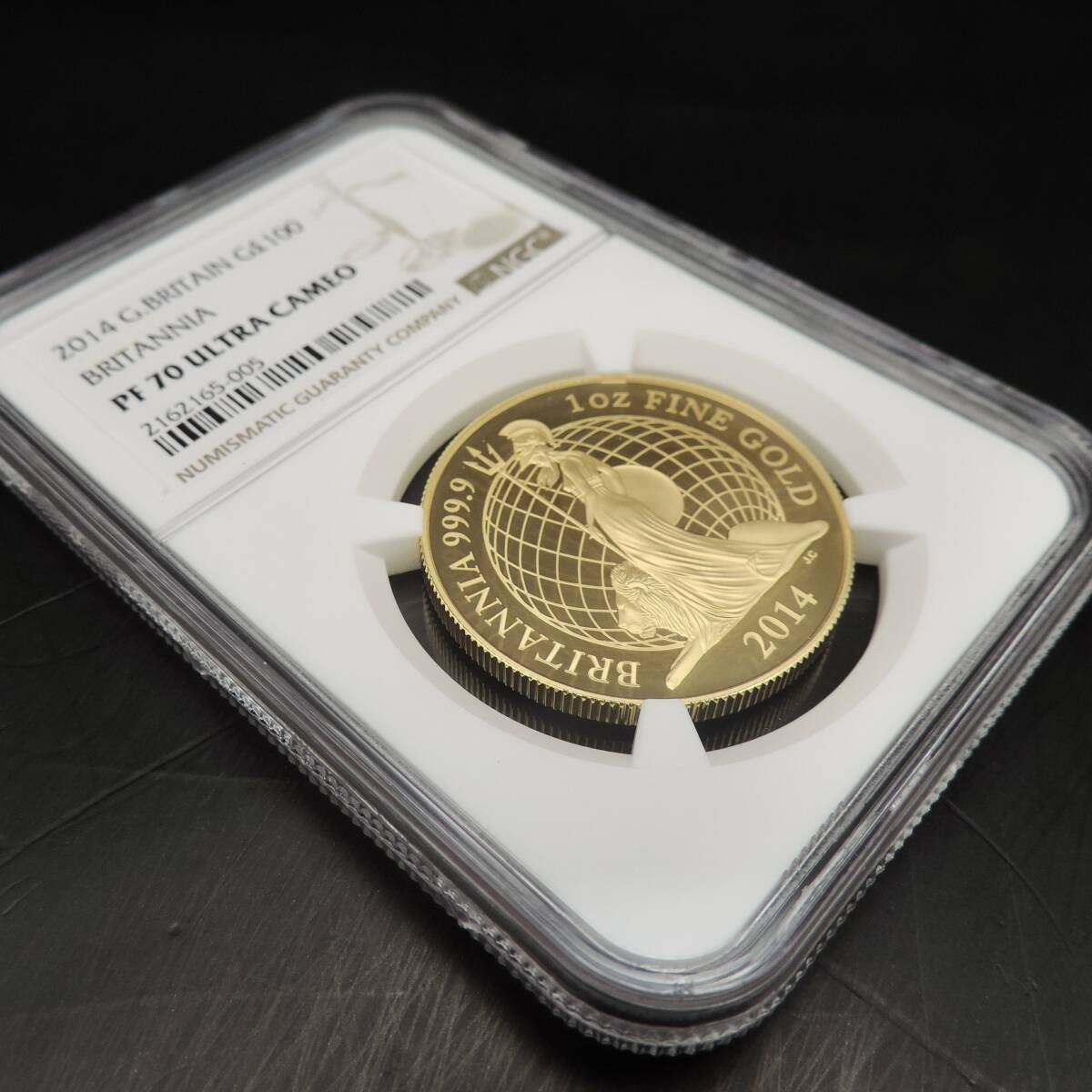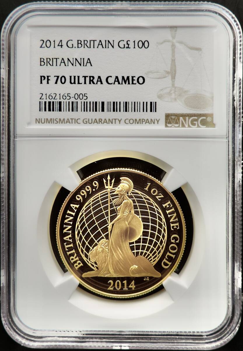 2014年 イギリス ブリタニア金貨 100ポンド 1オンス NGC PF70UC ウルトラカメオ 鋳造数375枚 見返り美人 最高鑑定 アンティークコイン#124