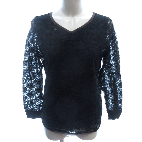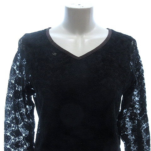 シーホースプ SI-HO SUP カットソー Vネック 刺繍 花柄 ナイロン 長袖 黒 ブラック /AU レディース
