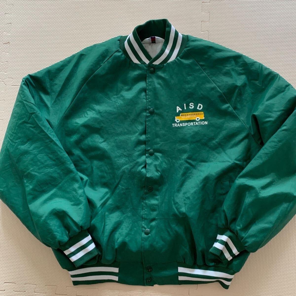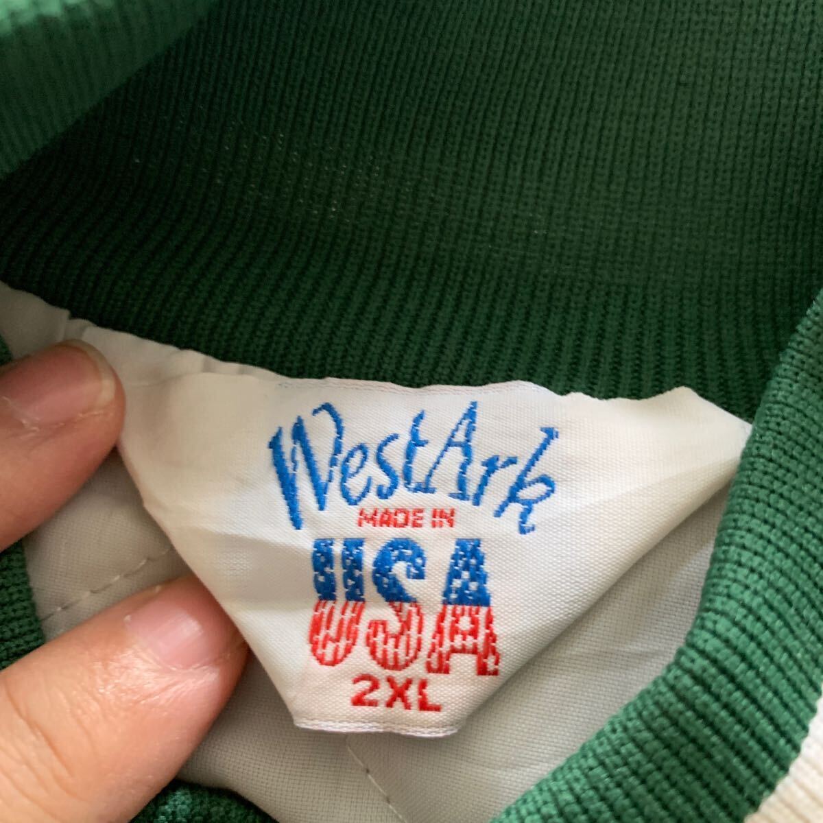 80s 90s 【West Ark】ウェストアーク USA製 ナイロンスタジアムジャンパー 2XL グリーン リブライン ナイロン ジャケット ラグラン