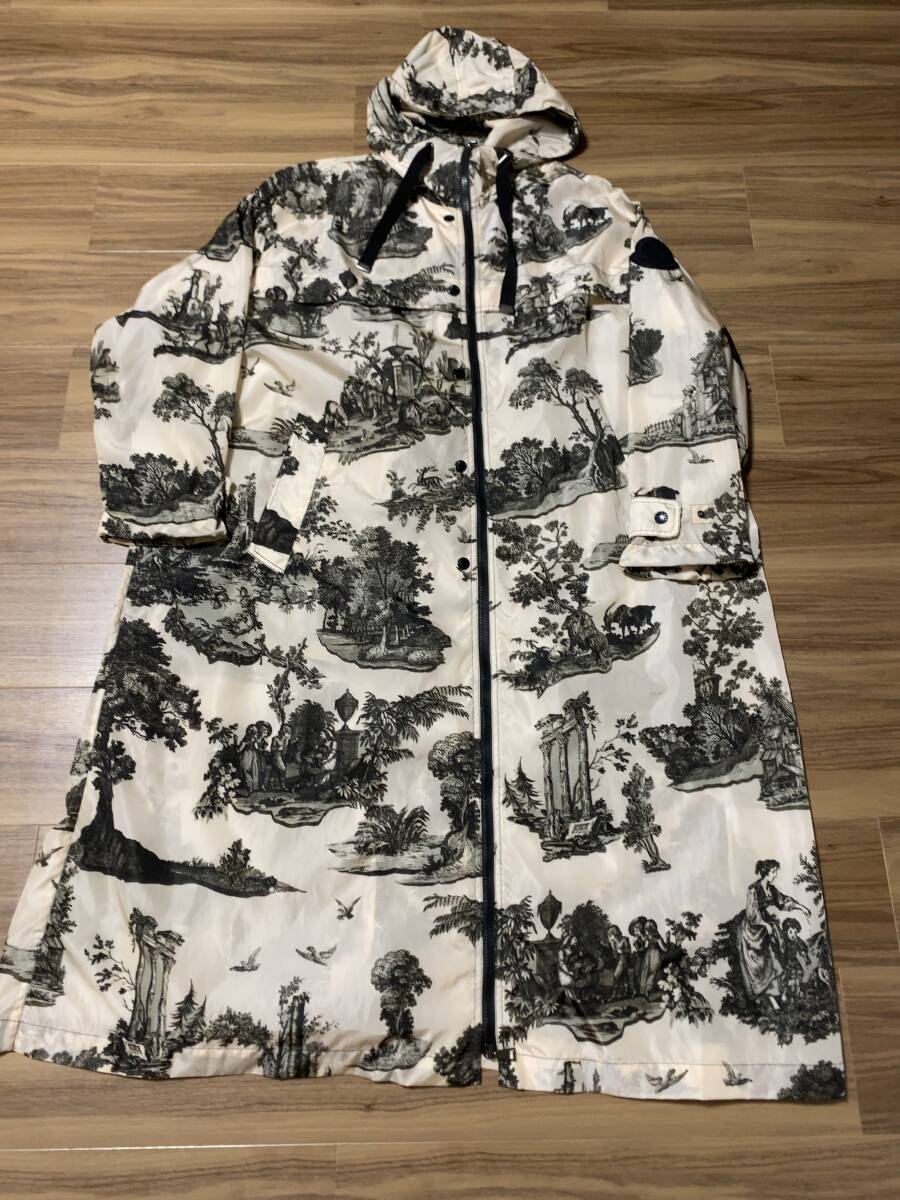 トワルドジュイ柄で肩にはモンクレールの大きいベルマークが付いておりとても派手です。