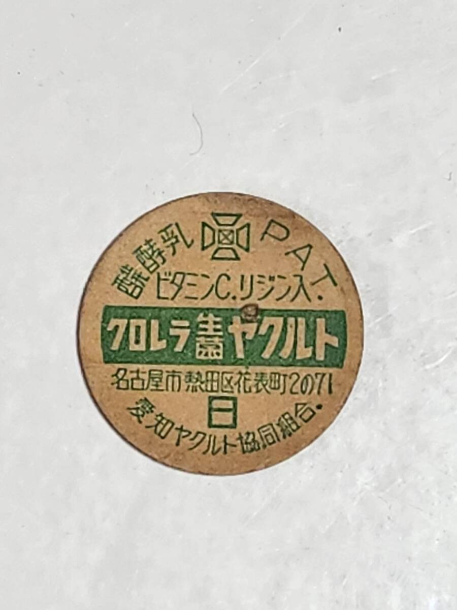 昭和レトロ クロレラ生菌ヤクルト 愛知ヤクルト協同組合 牛乳キャップ 日曜日 です。古い物ですので汚れや傷みがあります。蓋抜きの穴があります。