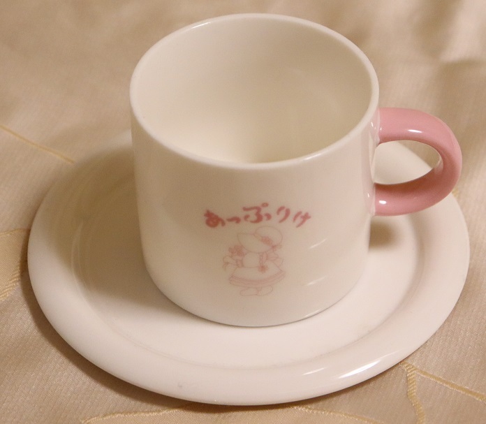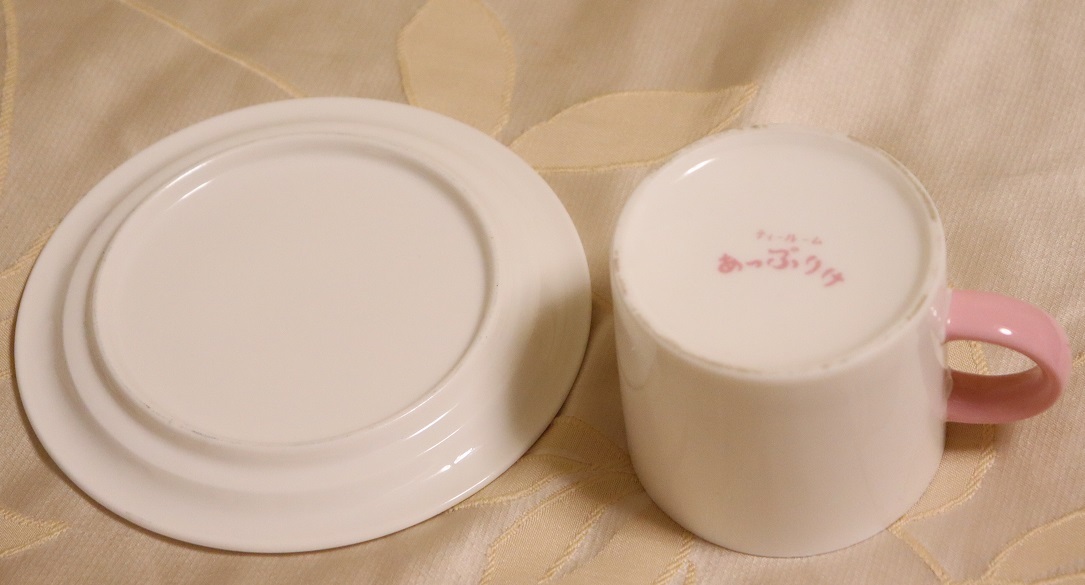 超レア!ティールーム あっぷりけ 喫茶店 カフェ 中古 カップ & ソーサー 一客 全体の高さ約7cm ホワイト×ピンク ファンシー 昭和