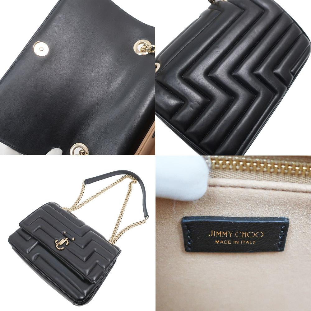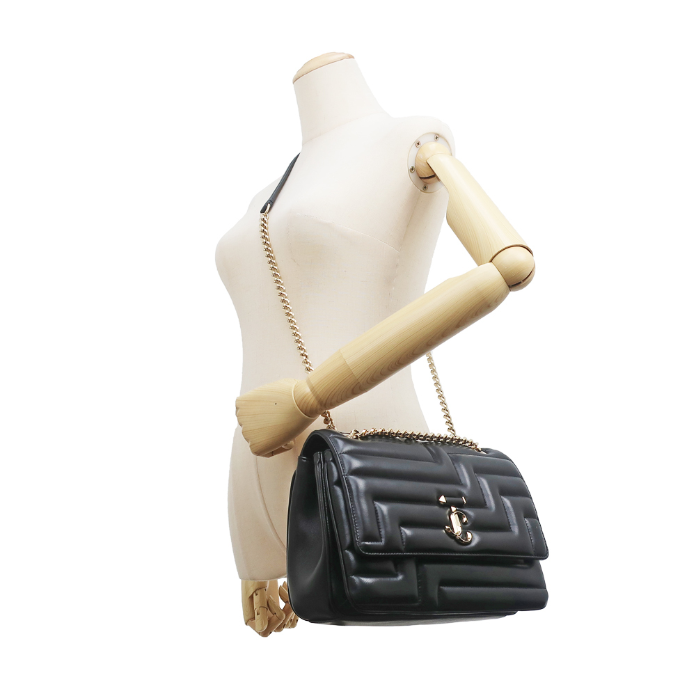 【名東】ジミーチュウ AVENUE キルティング ショルダーバッグ ブラック 黒色 カーフスキン レディース その他