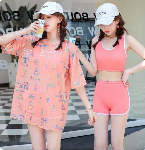 【5XLサイズ 3点セット】スリットベリーカバー水着,スリミング,フラットアングル,スポーツ,学生,大型,温泉,新品 ※色:8271ピンク
