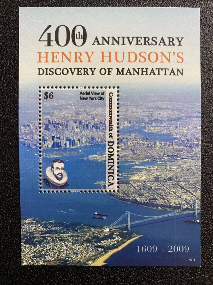 ドミニカ 探検家ハドソンのマンハッタン島発見400年 小型シート1種完 未使用 NHです。
