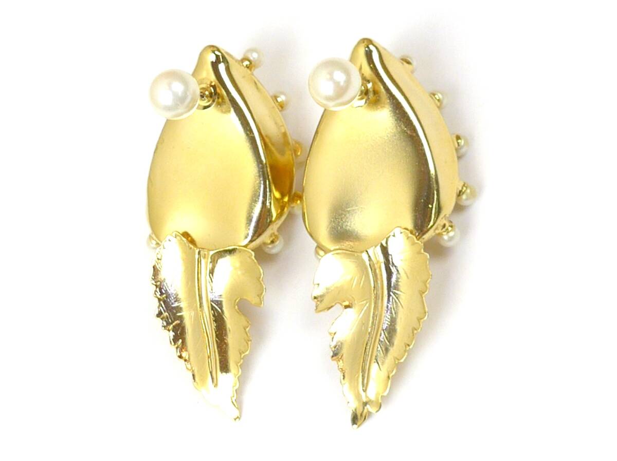 Mame Kurogouchi マメクロゴウチ 17AW完売 ボタニカル パール ピアス ゴールド 雫・リーフモチーフ