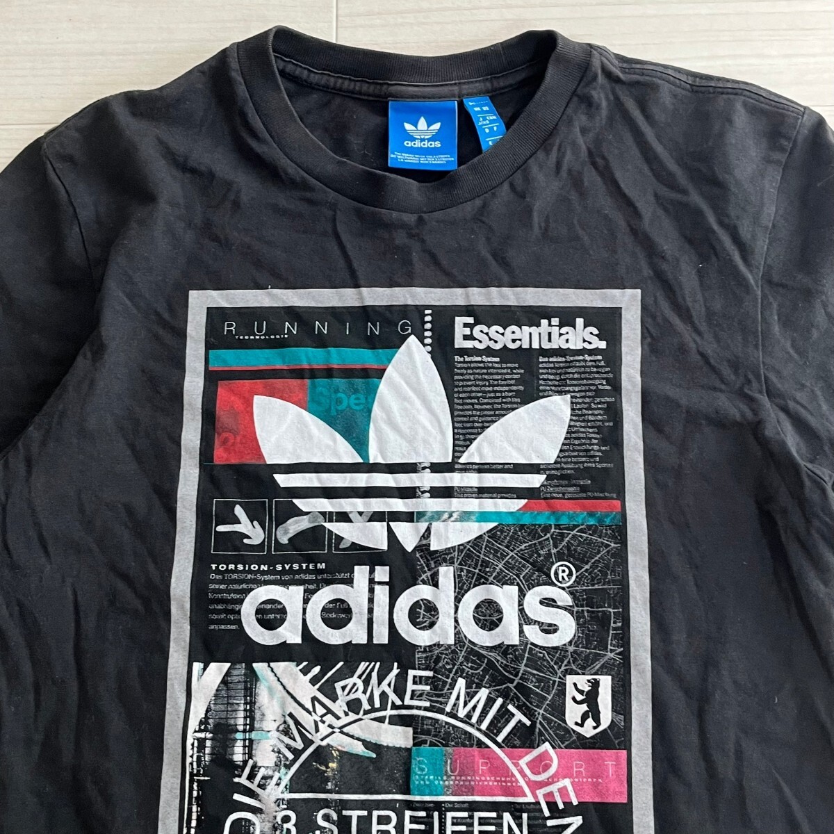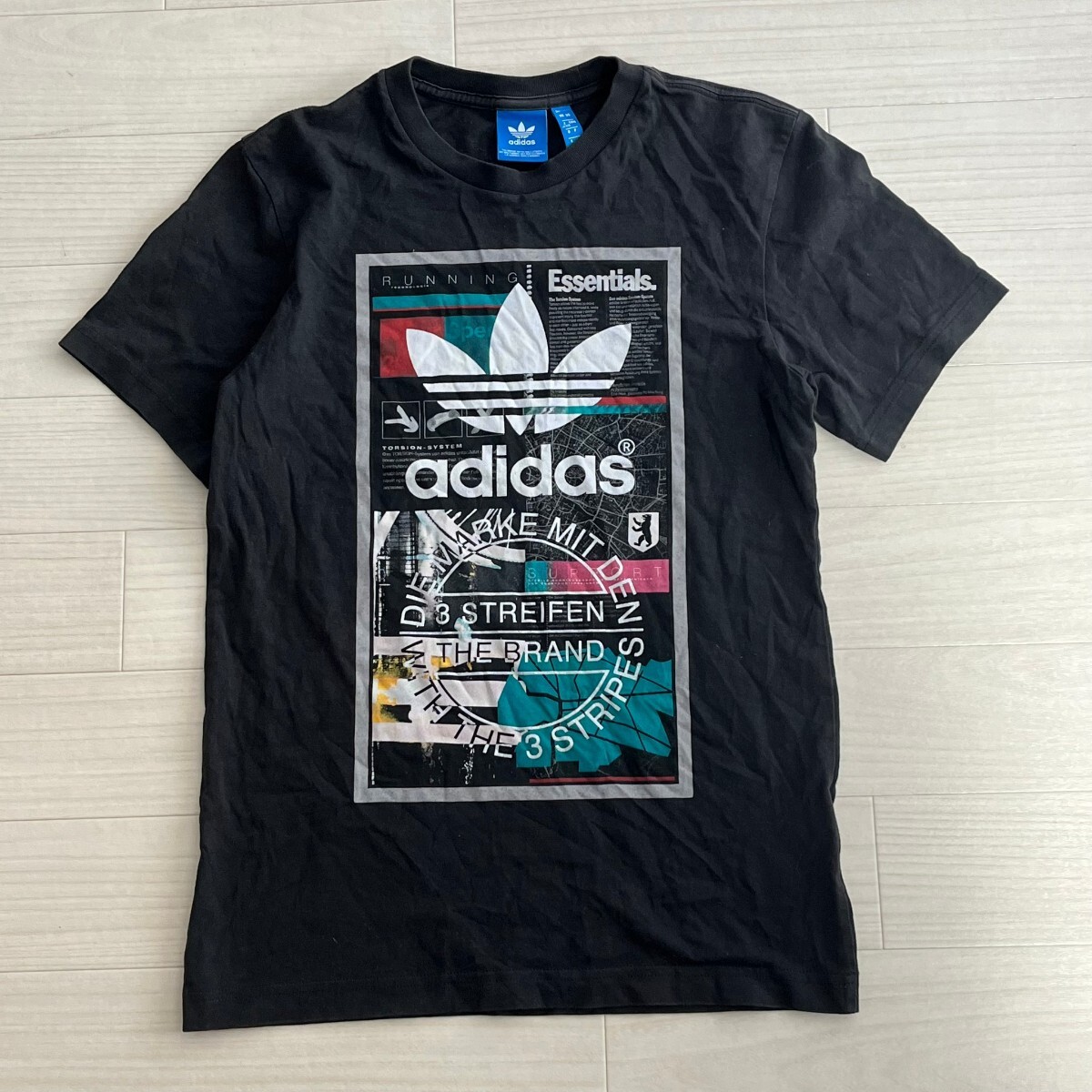 adidas アディダス トレフォイルロゴ 前面ビッグプリント Tシャツ ブラック サイズxs