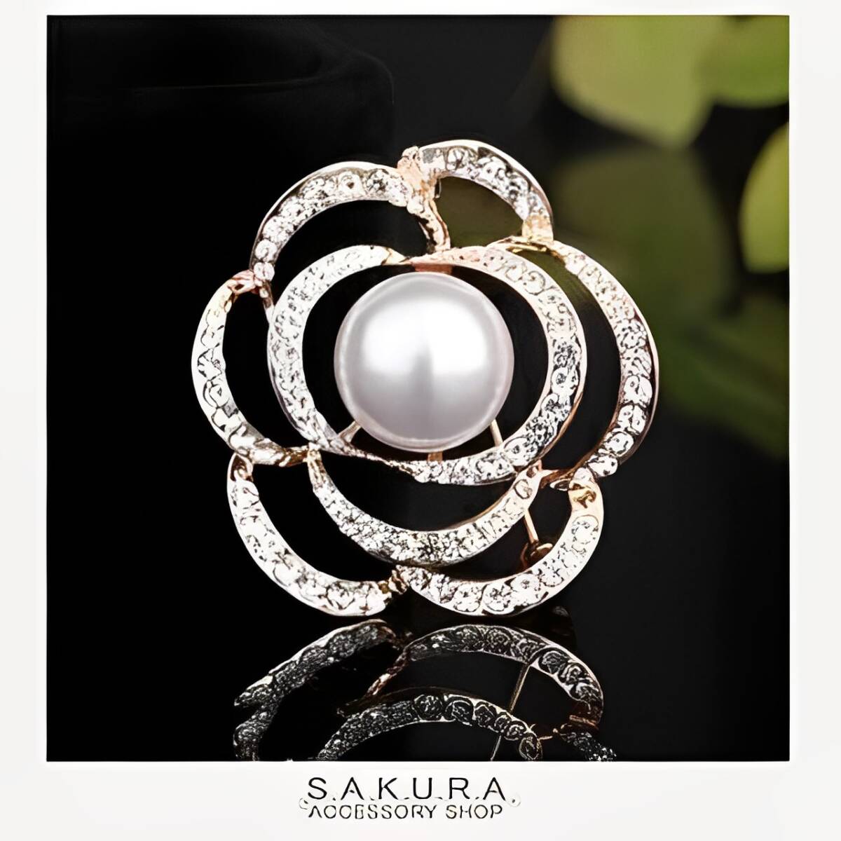 丸い花びらが重なり、ラインストーンで縁取られた女性らしい優雅なデザイン