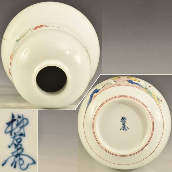 花瓶の底に「柿右衛門作」と描き銘あり。