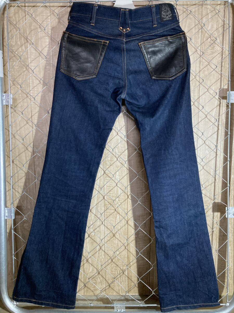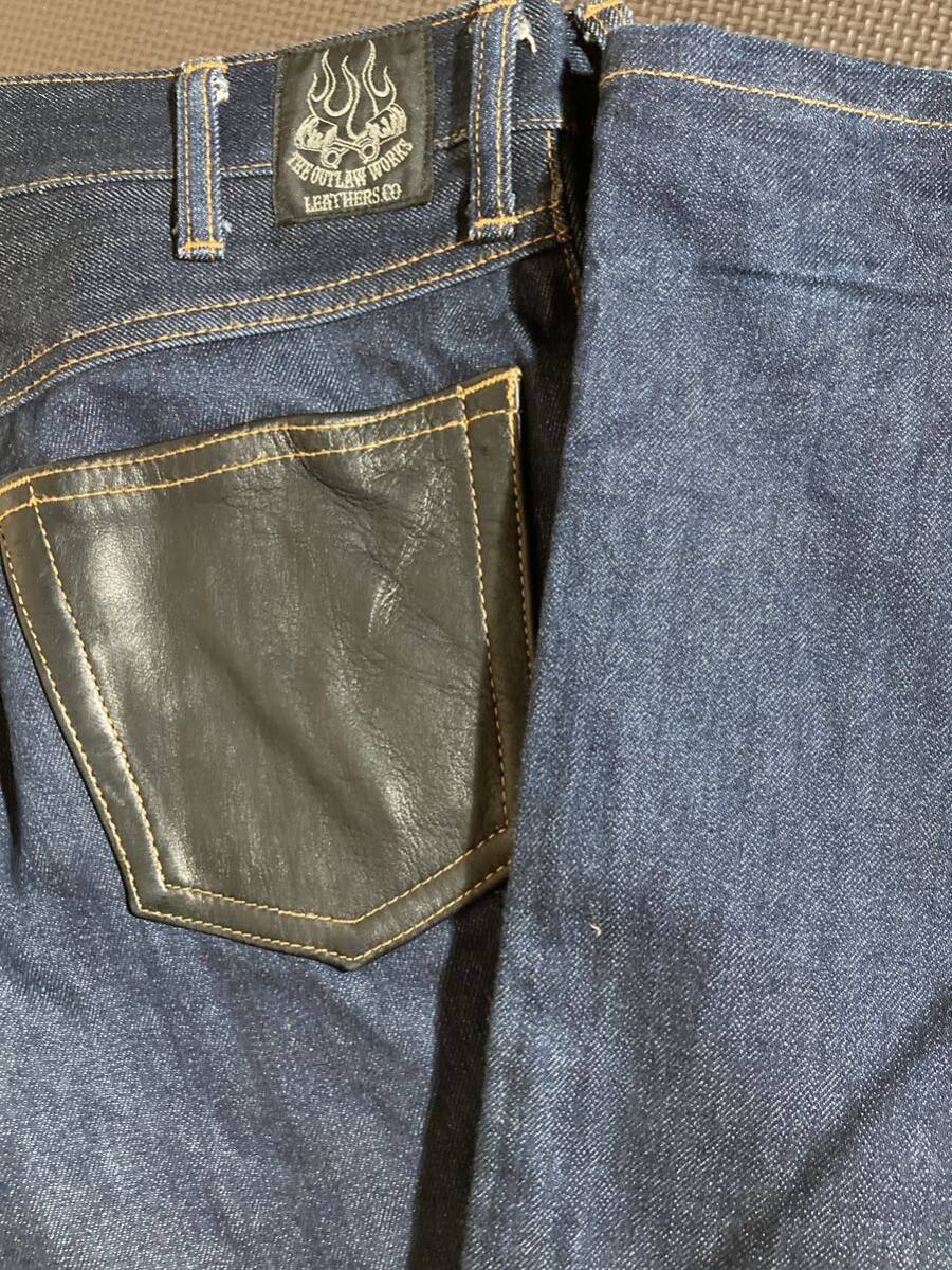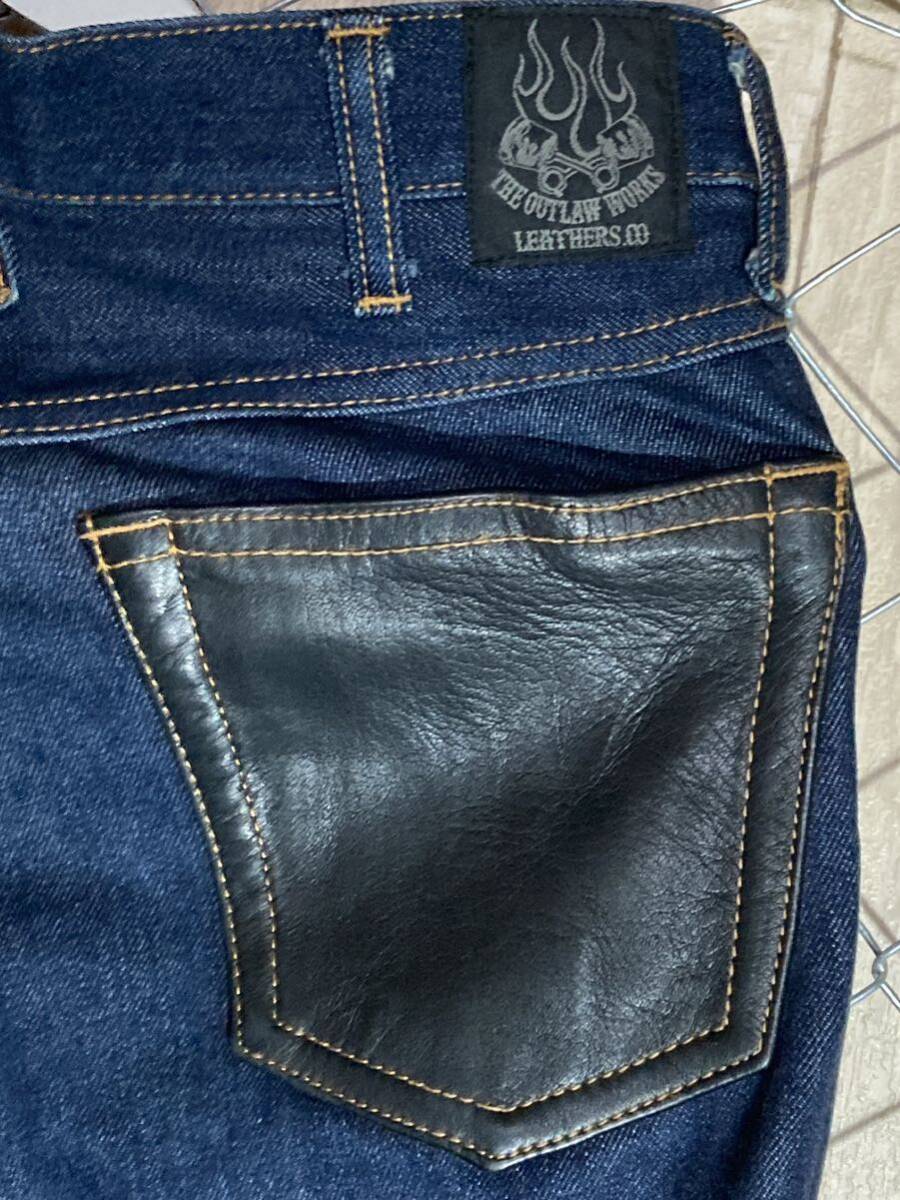 THE OUTLAW WORKS アウトローワークス デニムパンツ レザーポケット ダブルニーL33 W27