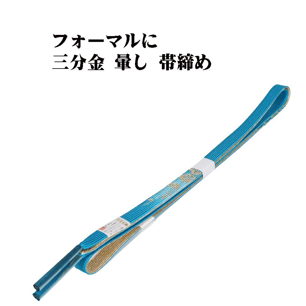 訪問着用 帯締め 三分金 帯締め 組紐 平 エメラルドグリーン 暈しに金の編み 新品 |
