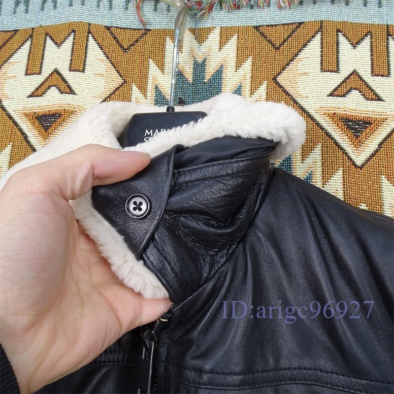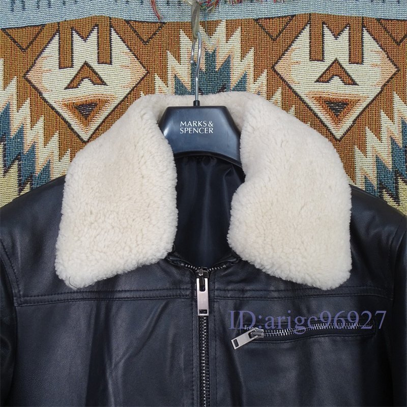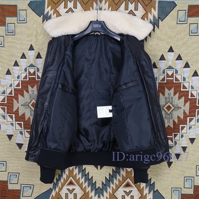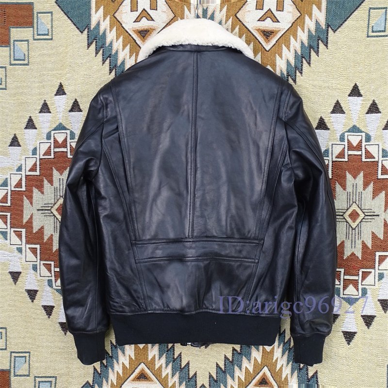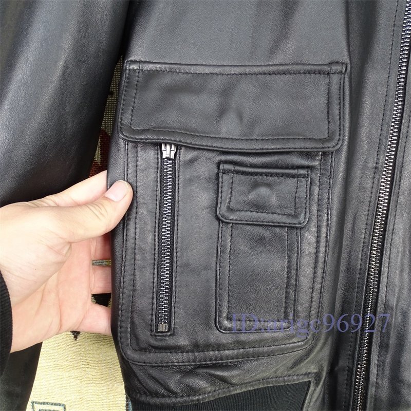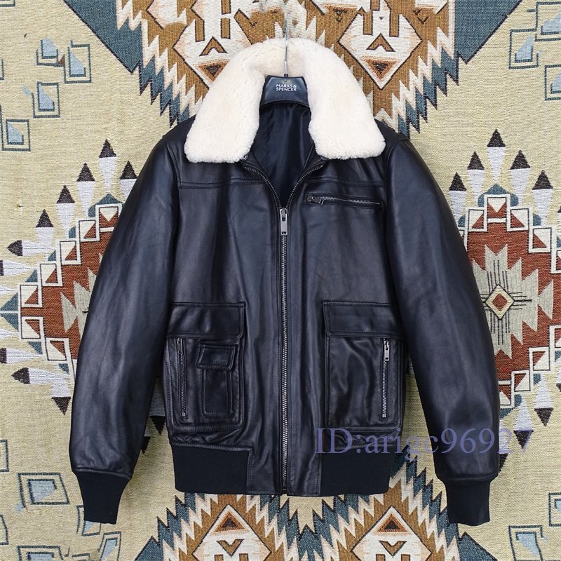 R922☆新品フライトジャケット メンズ 羊革 ジャケット 空軍 ウール 襟取り外し可能 羊革 革ジャン M~4XL 黒