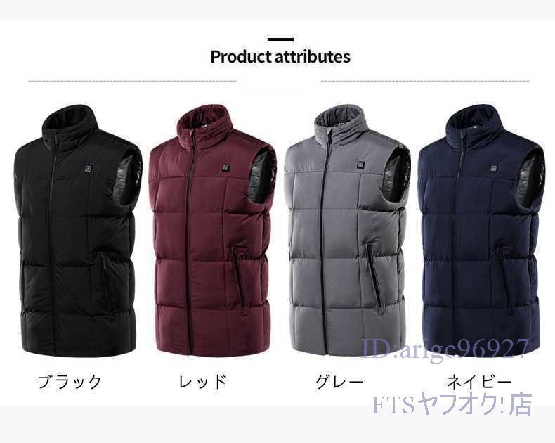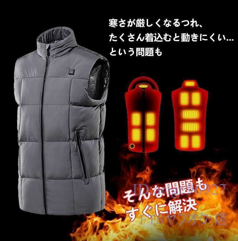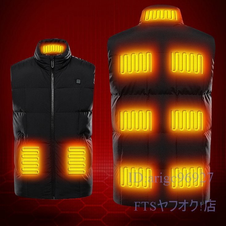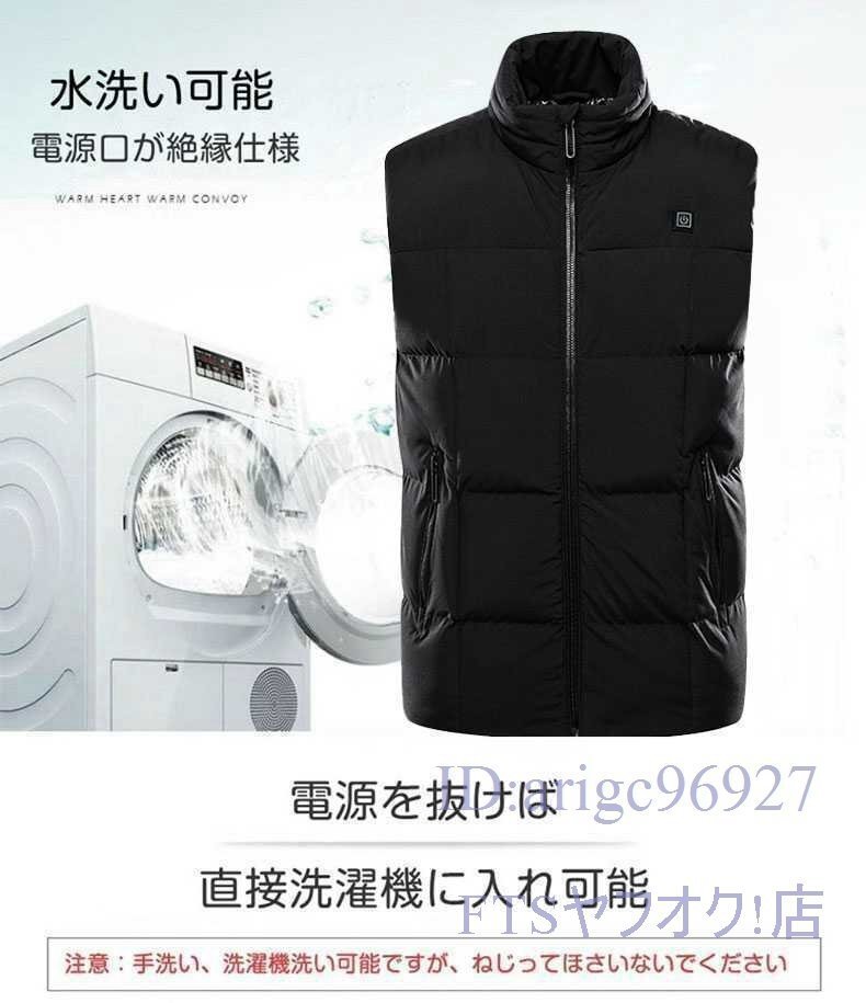 X206☆加熱ベスト USB加熱 電熱ジャケット電熱ウエア 男女兼用 3段階温度調節 9つヒーター内蔵 保温防寒 水洗い可能 作業着 6XL