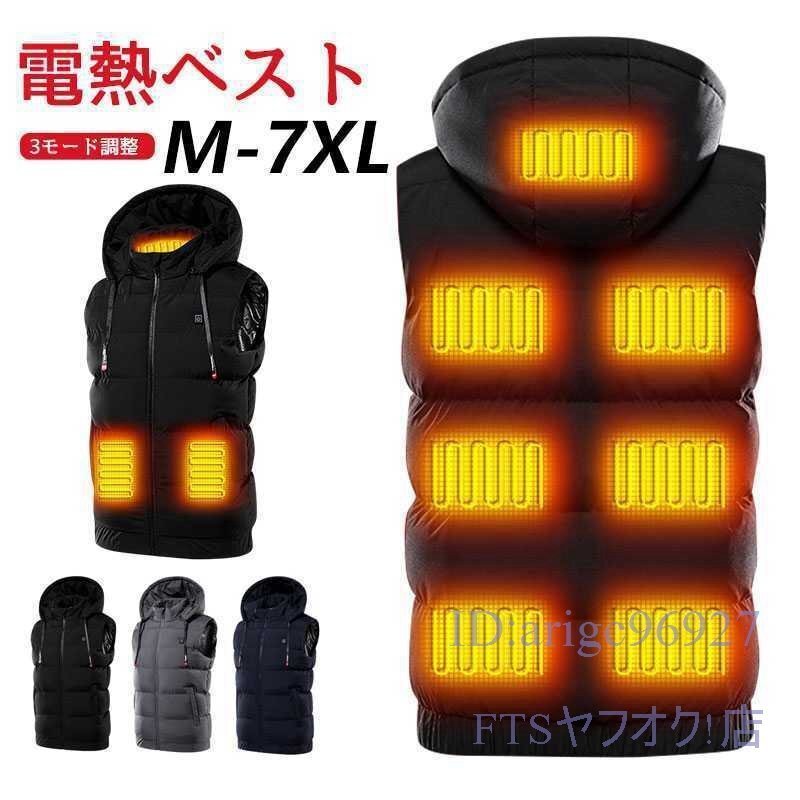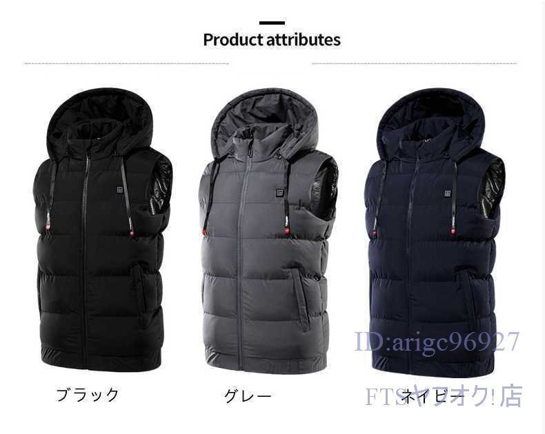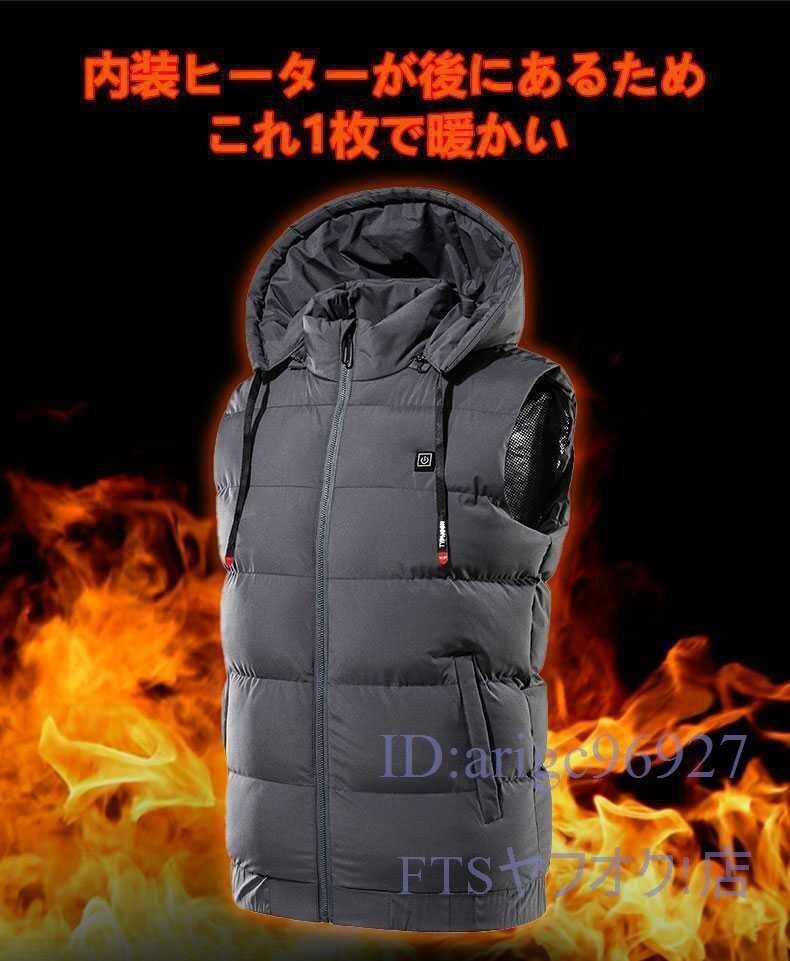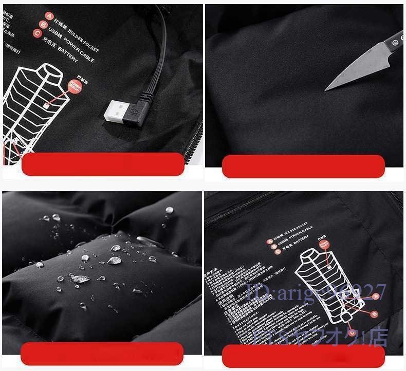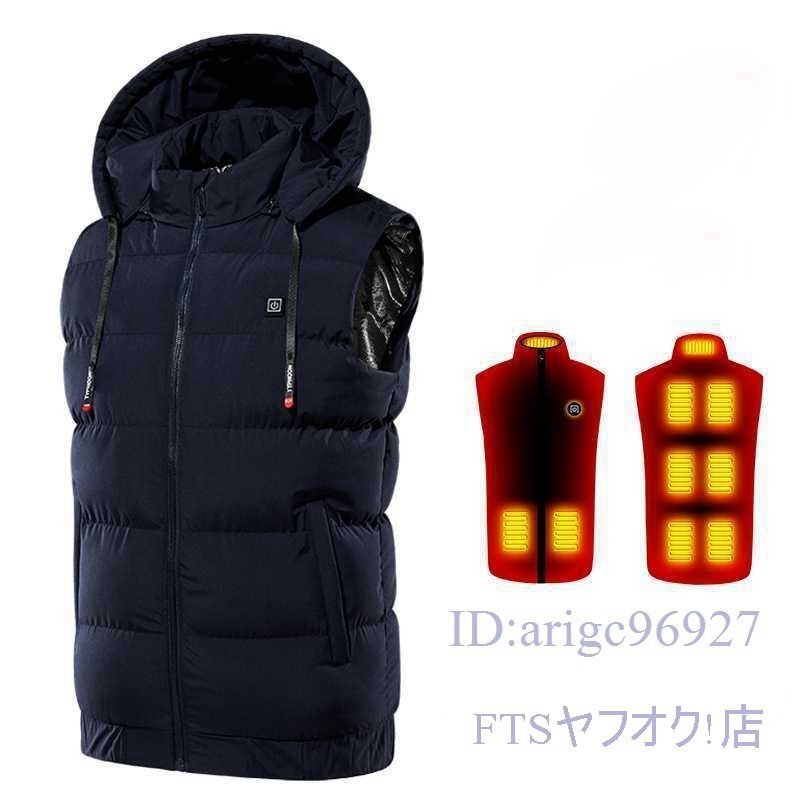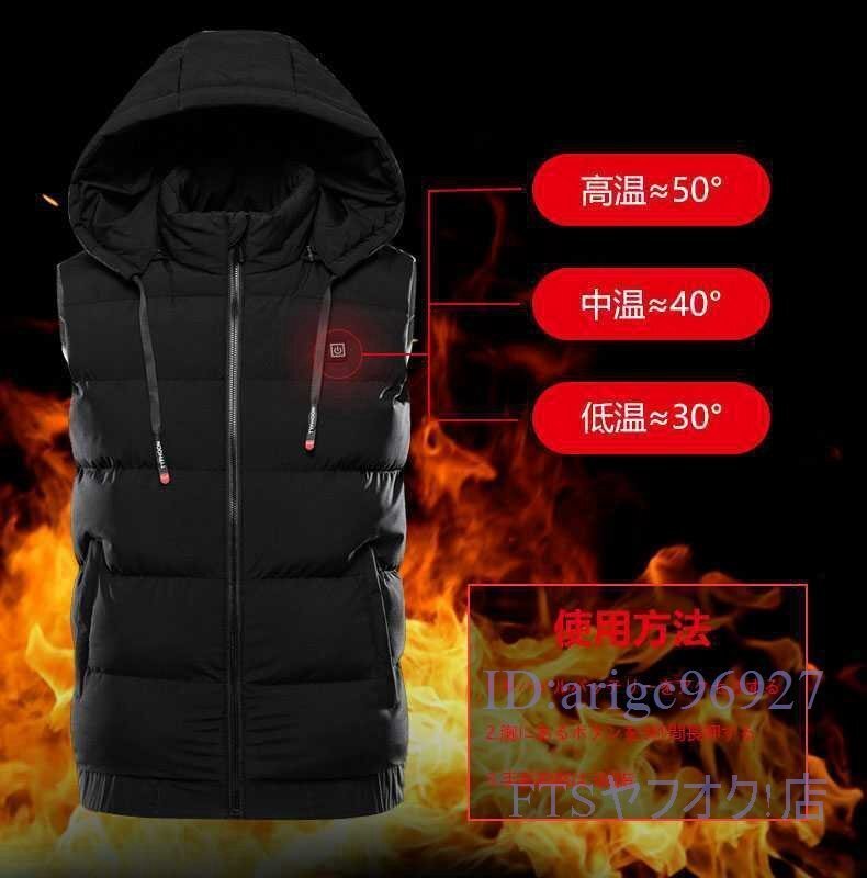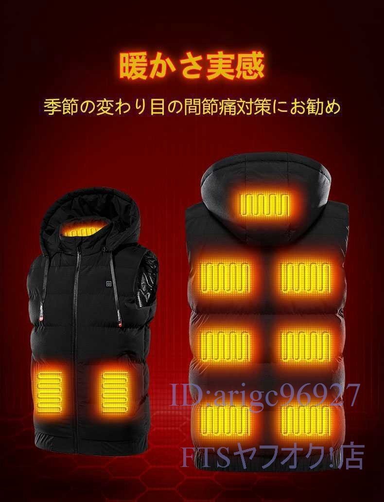 X147☆電熱ベストUSB充電式 ヒートベスト ヒーター内蔵 9つヒーター アウター 電熱ウェア レディース 防寒 中綿ベスト男女兼用 5XL