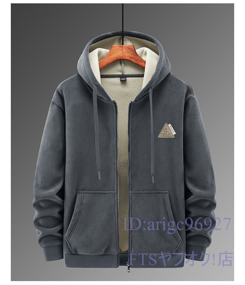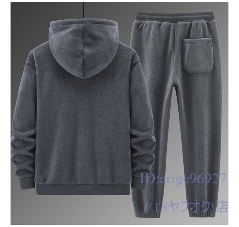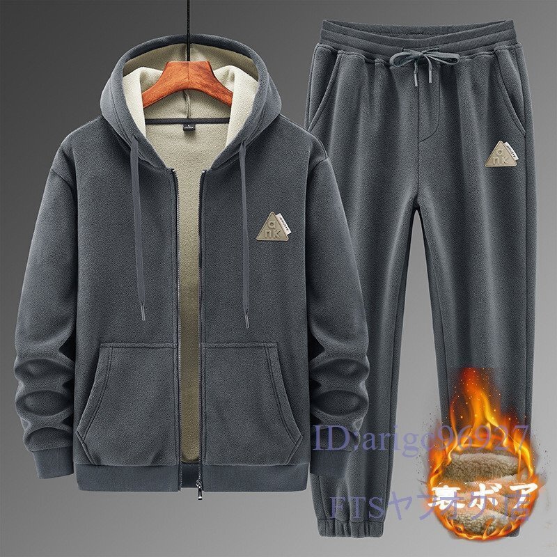 T731☆新品裏フリースセットアップ メンズ 冬物裏ボア ジャージ上下セット ジャケットフード付き+ズボン ジム トレーナー グレー 3XL