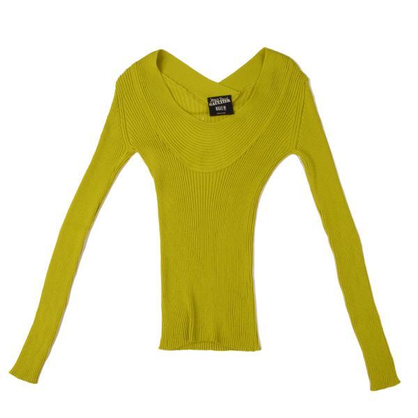 | ジャンポールゴルチエJean-Paul GAULTIER ジャンポールゴルチエ マイユファムJean Paul GAULTIER MAILLE FEMME ネックデザインリブニット 黄緑S位 |