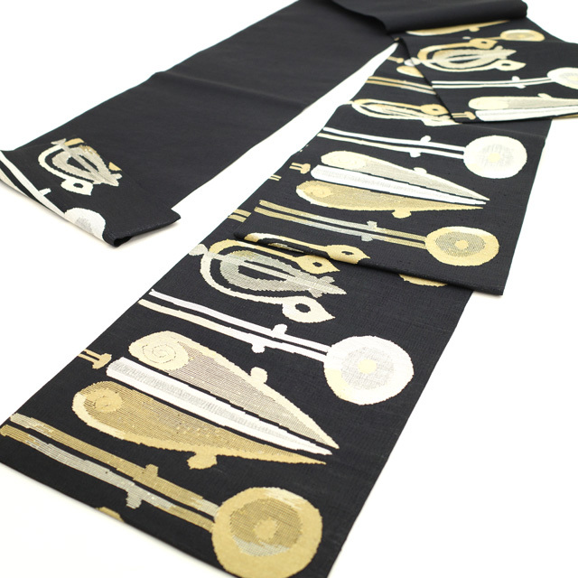 袋帯 リサイクル 正絹 金糸 銀糸 黒地 モダン柄 アジアンテイスト 上質な帯地 カジュアル 中古 仕立て上がり みやがわ sb52971