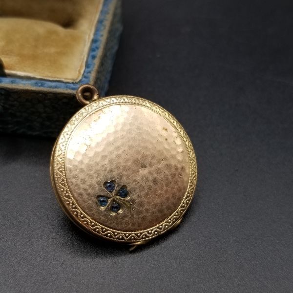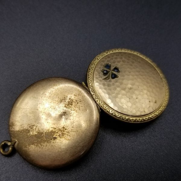 米国 ヴィンテージ ローズゴールド 金張り ラウンド ロケット 四つ葉のクローバー 装飾 スウィートハート