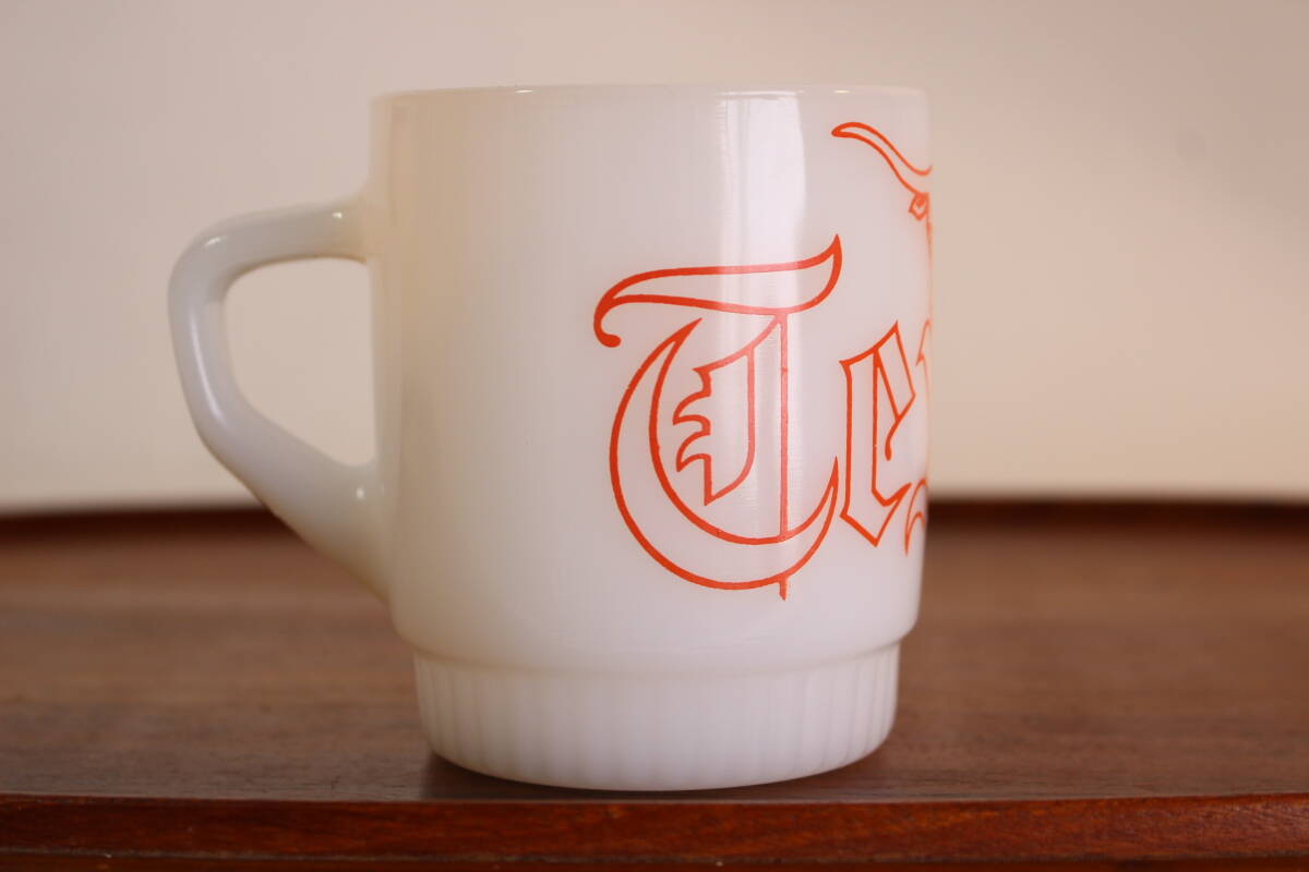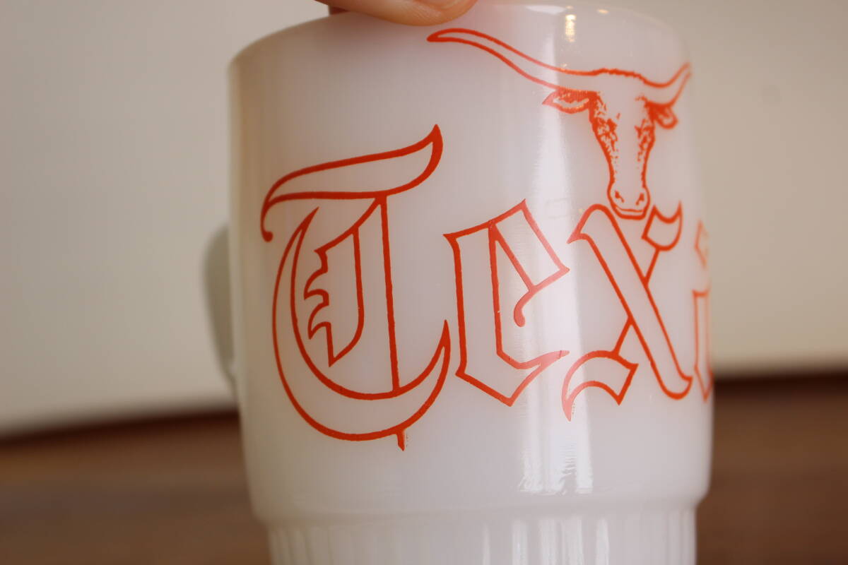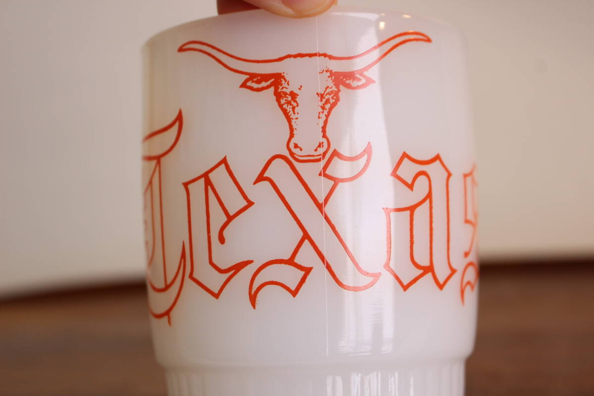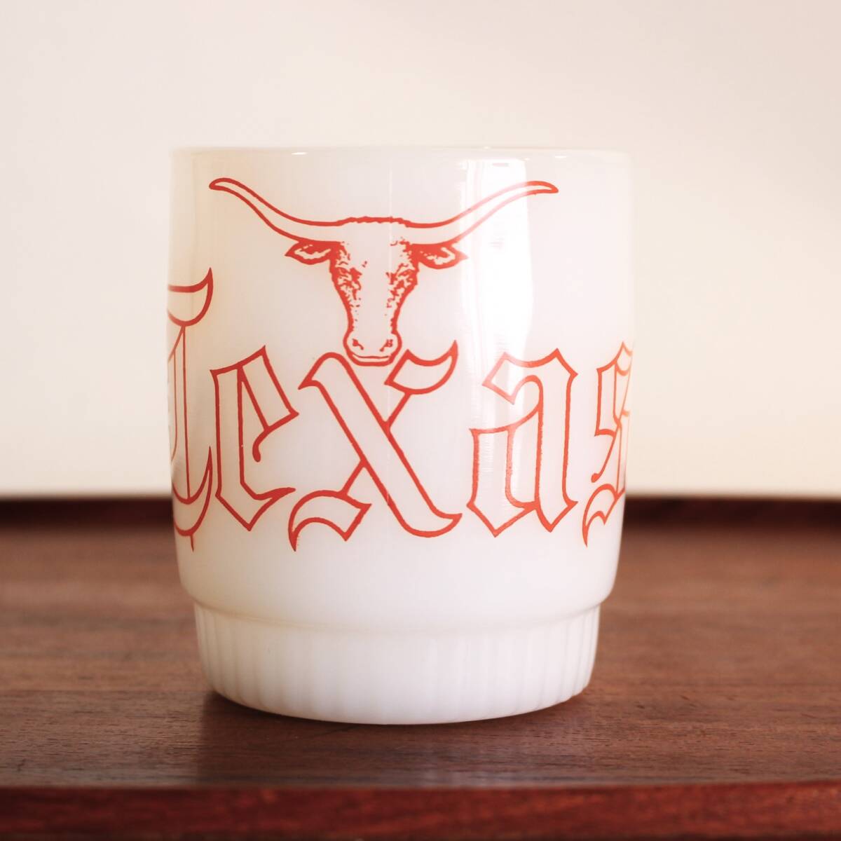 大きく「Texas」と、テキサスロングホーンが描かれたテキサスのスーベニアマグ。