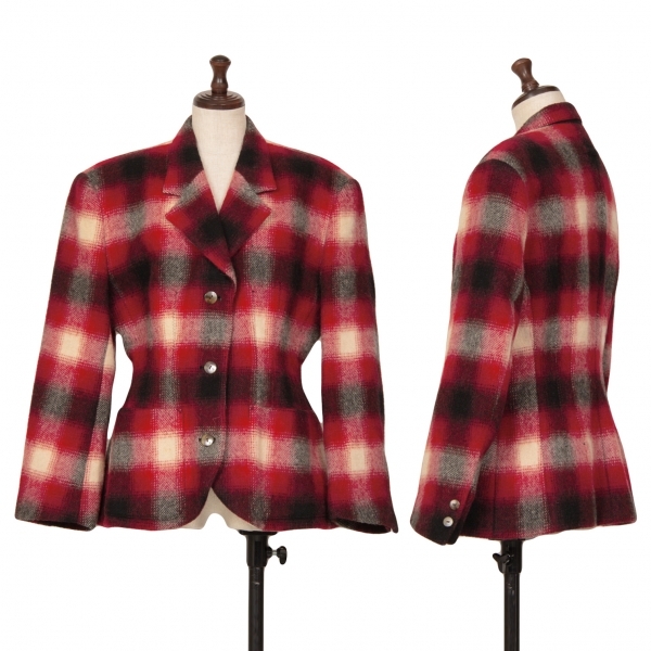 | ジャンポールゴルチエJean Paul GAULTIER ウールチェック3Bジャケット 赤黒白9 |