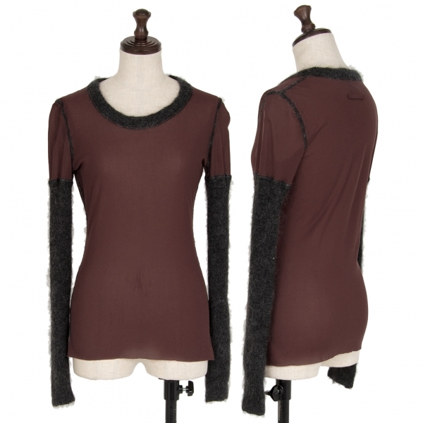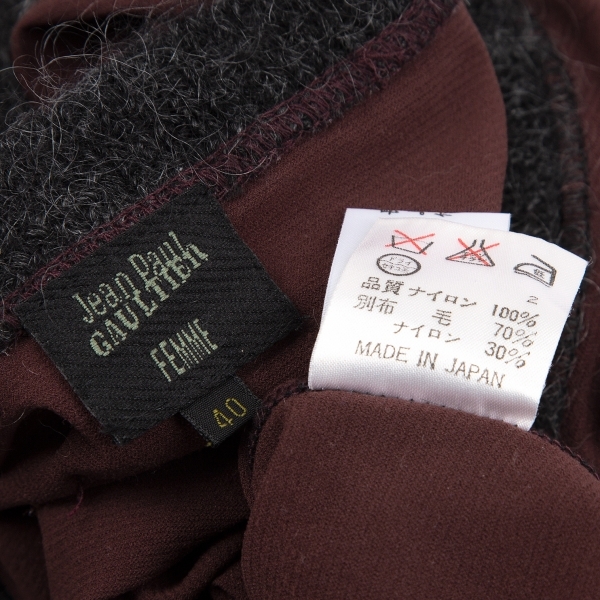 ジャンポールゴルチエ ファムJean Paul GAULTIER FEMME ヘアリーニット切替パワーネットカットソー エンジチャコール40 |