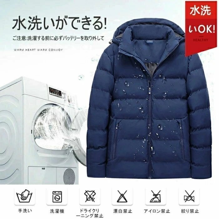 余熱がない状況で手で水洗えます。洗濯する前に必ずバ ッテリーを取り外してください。強力に揉まないで 下さい。