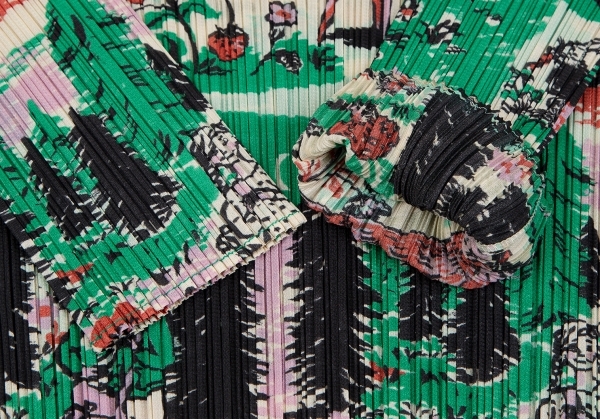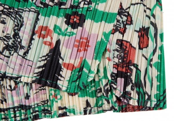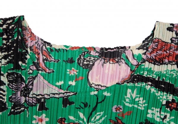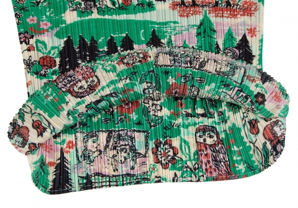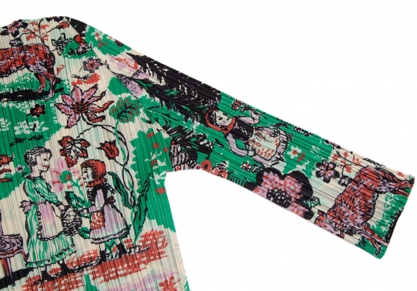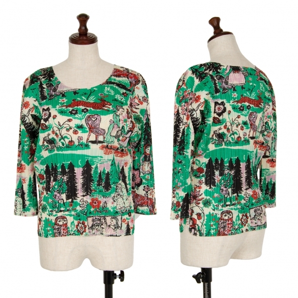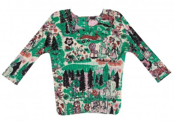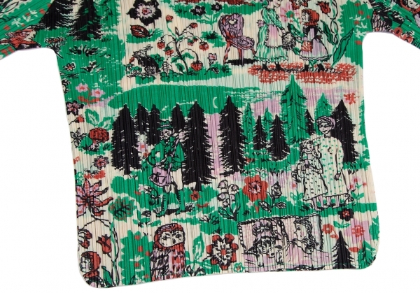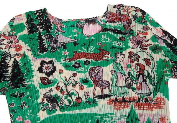 | プリーツプリーズPLEATS PLEASE 赤ずきんちゃん柄プリーツ7分袖カットソー ベージュ緑他3 |