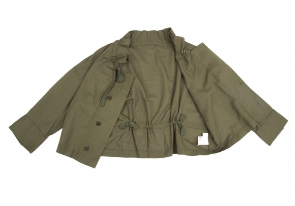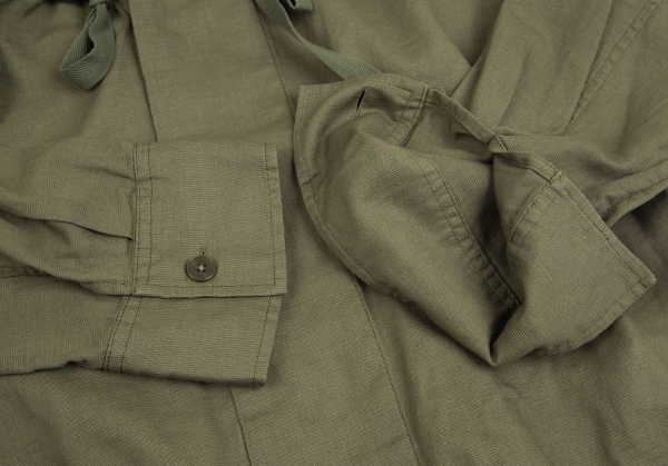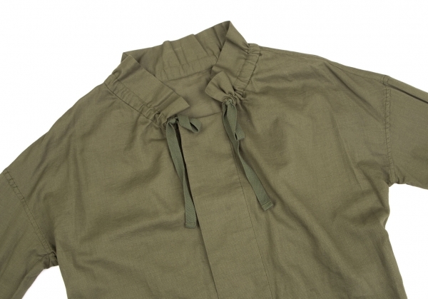 マカフィーMACPHEE リネン混コットンストリングネックブラウス カーキ36 |