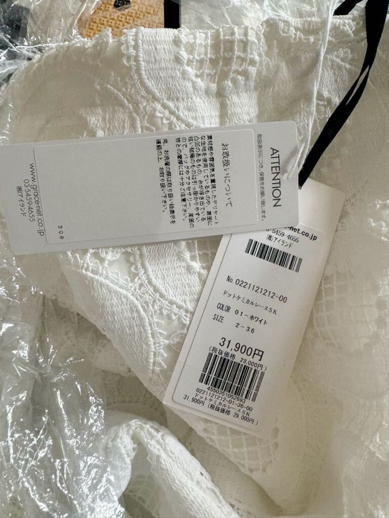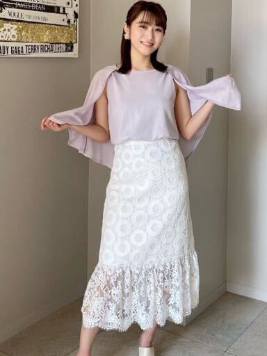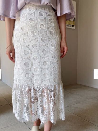 アイコニックなサークルレースを使用したフェミニンスカート。