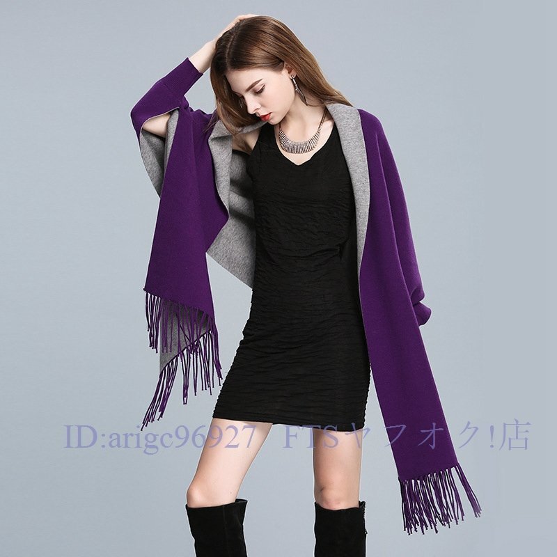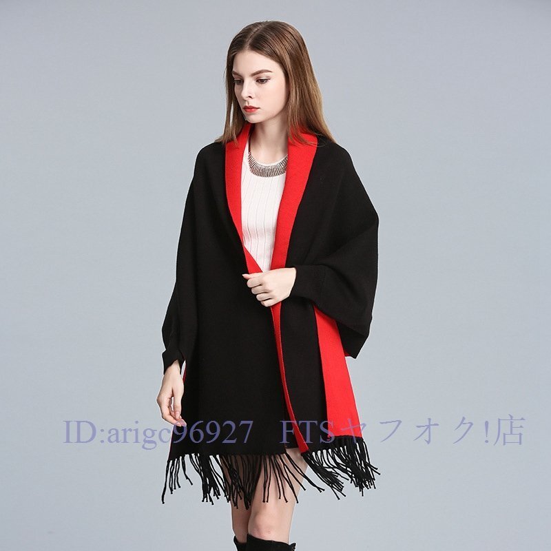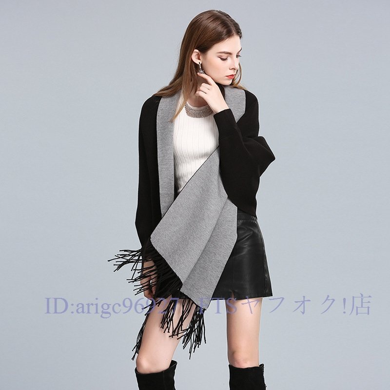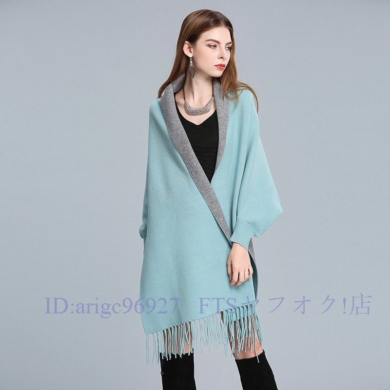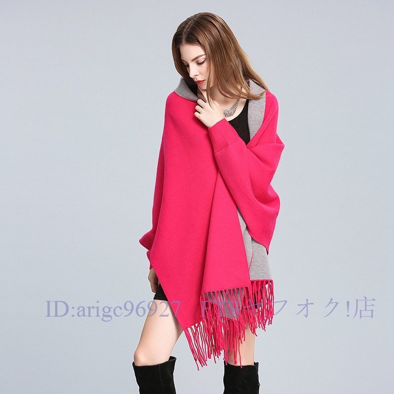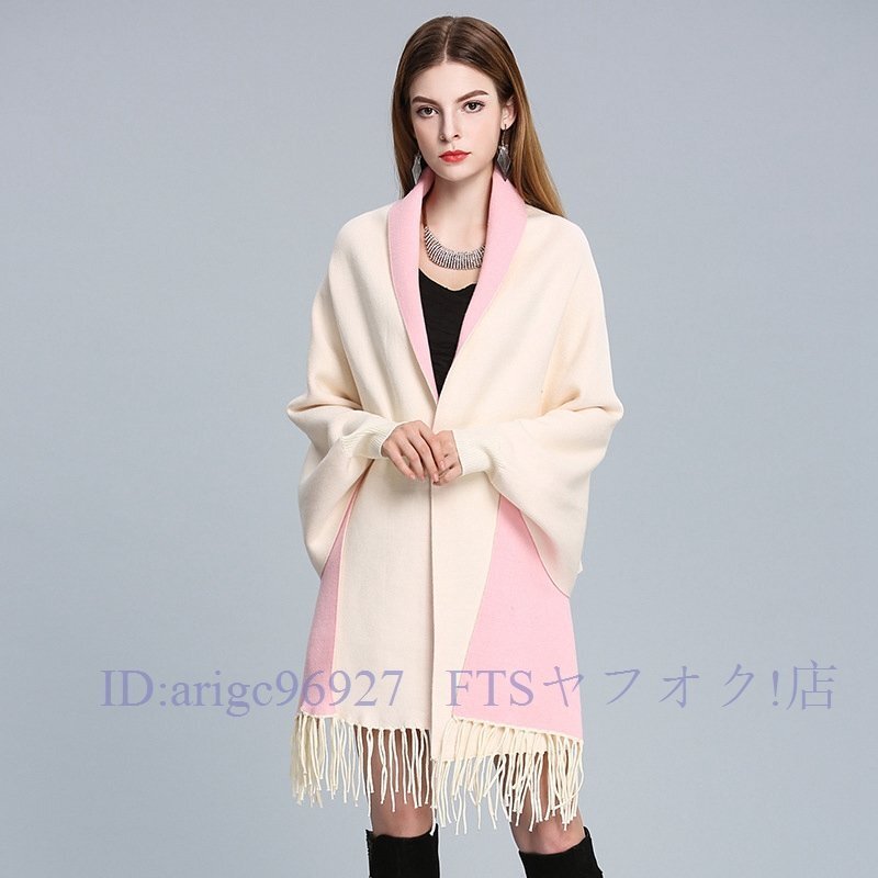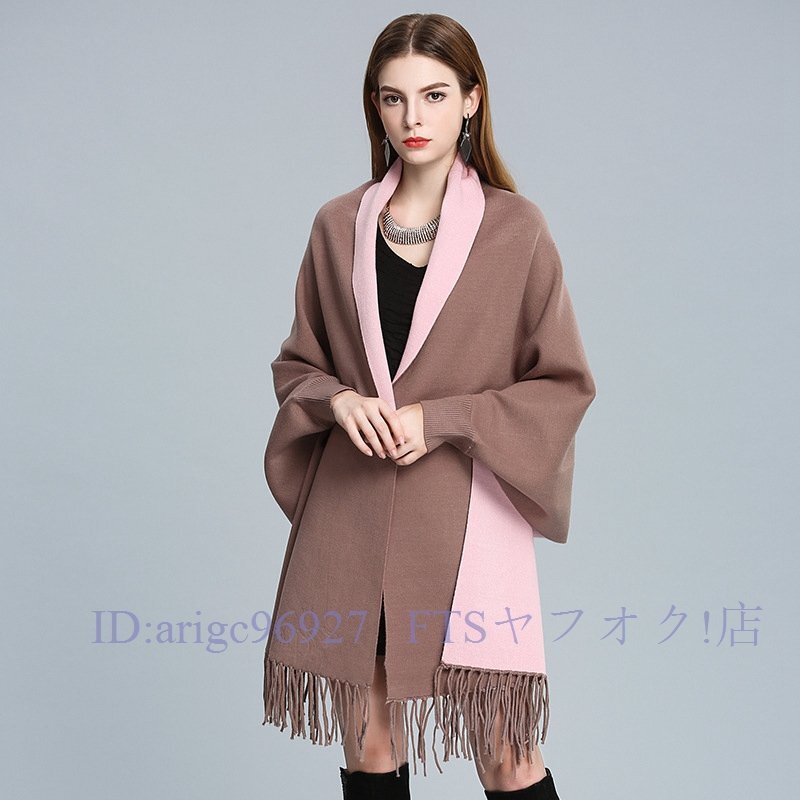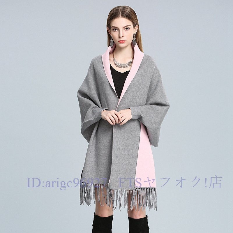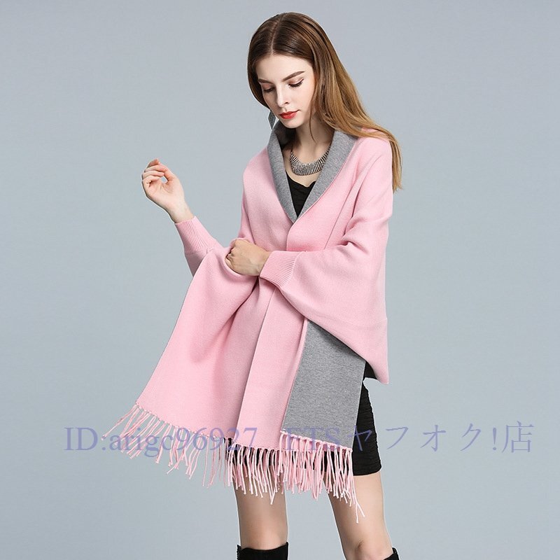 A6647☆新品冬新品 ポンチョコート レディース マントコート バイカラー 高級上品フェイクカシミヤニットカーディガン ピンク 灰