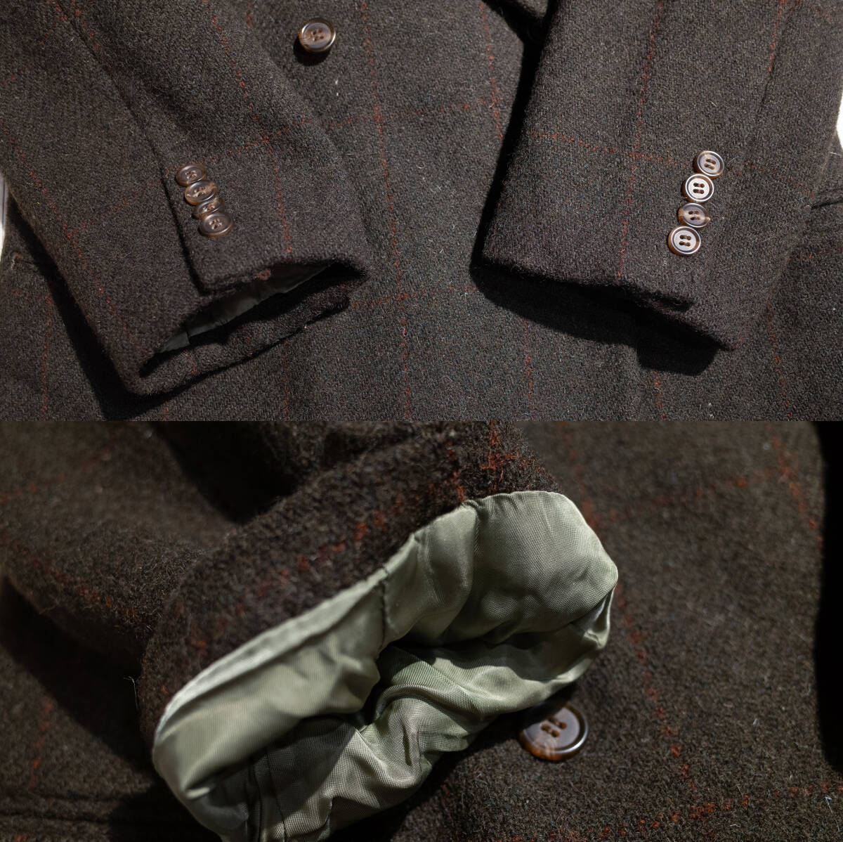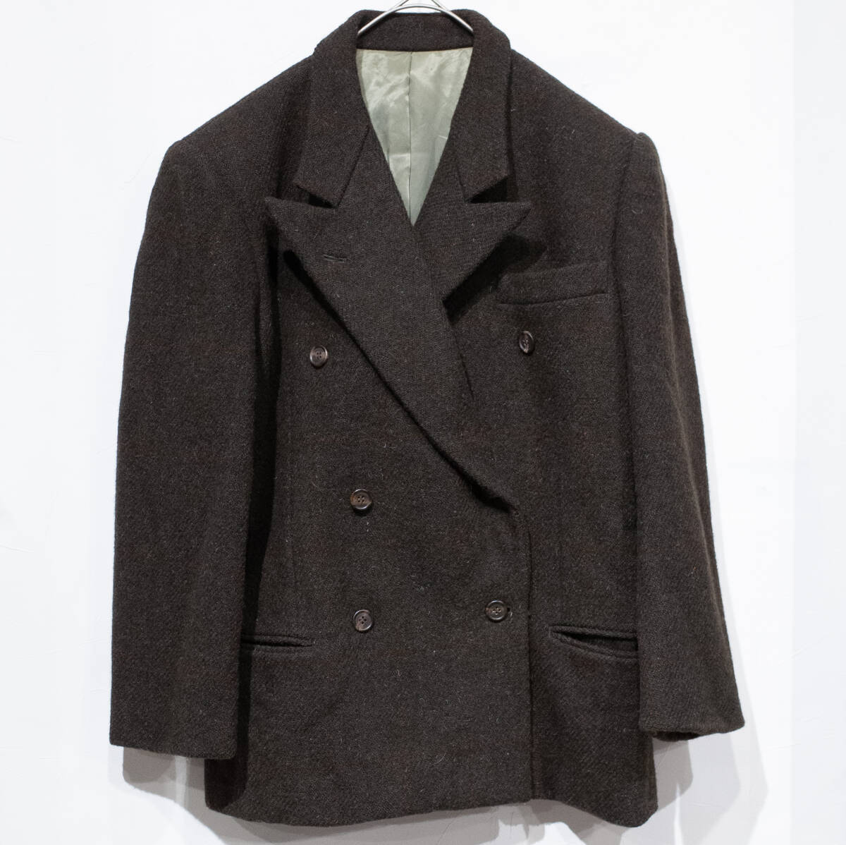 【商品】90s RALPH LAUREN ラルフローレン ウール 6ボタン ダブル テーラードジャケット ウール ツイード ブラウン カーキ 古着