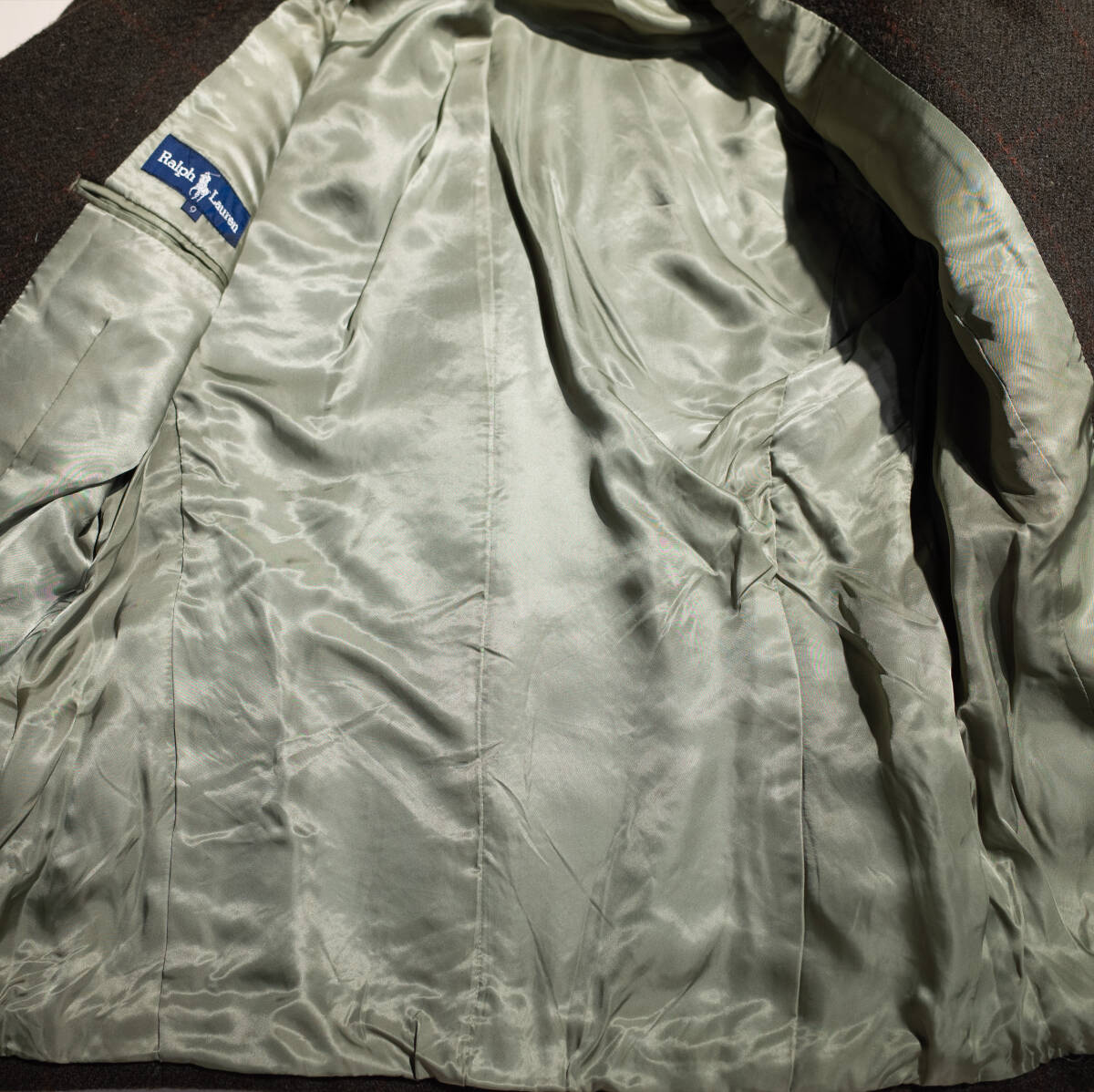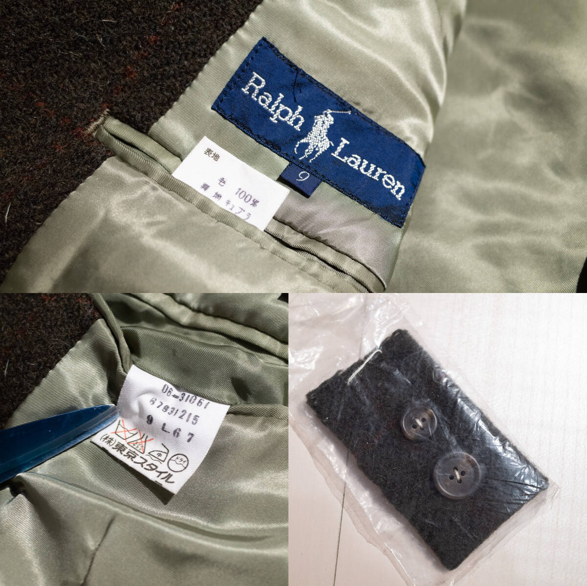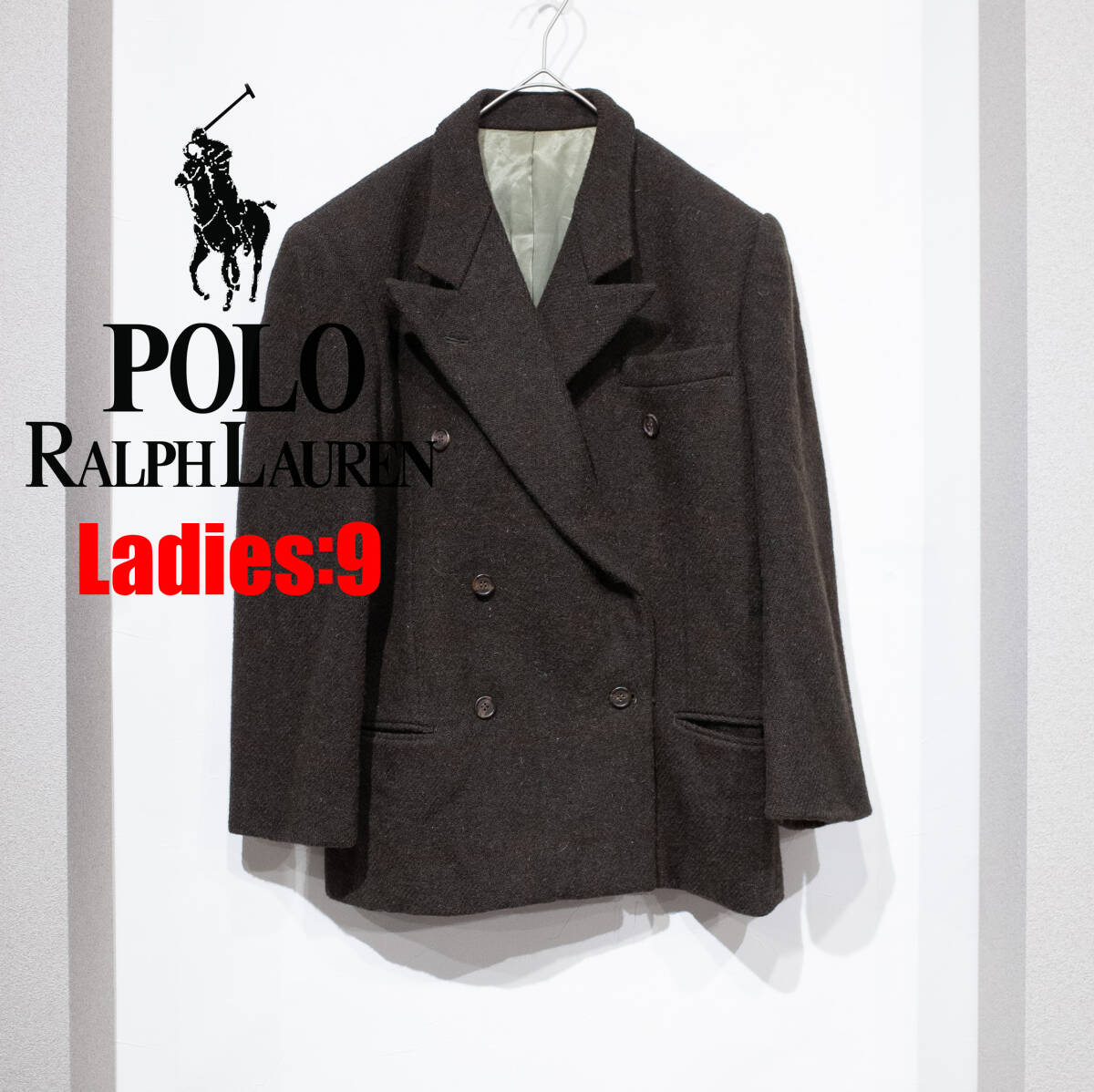レディース 9 / 90s RALPH LAUREN ラルフローレン 6B ダブル テーラード ジャケット ウインドウペン メルトン ブラウン カーキ トラッド