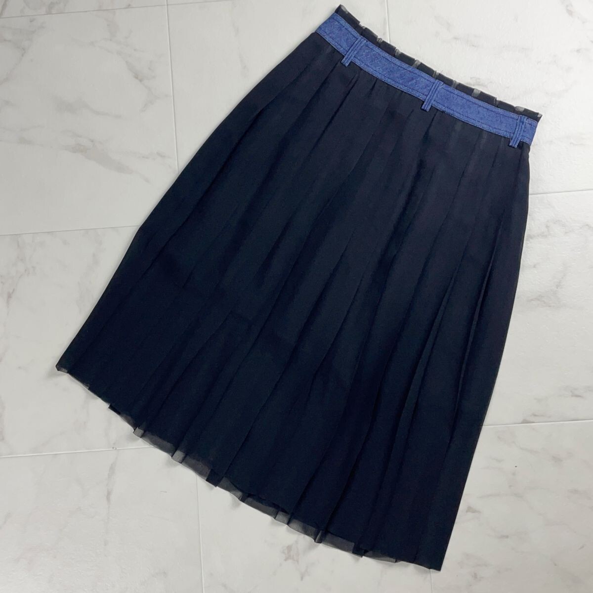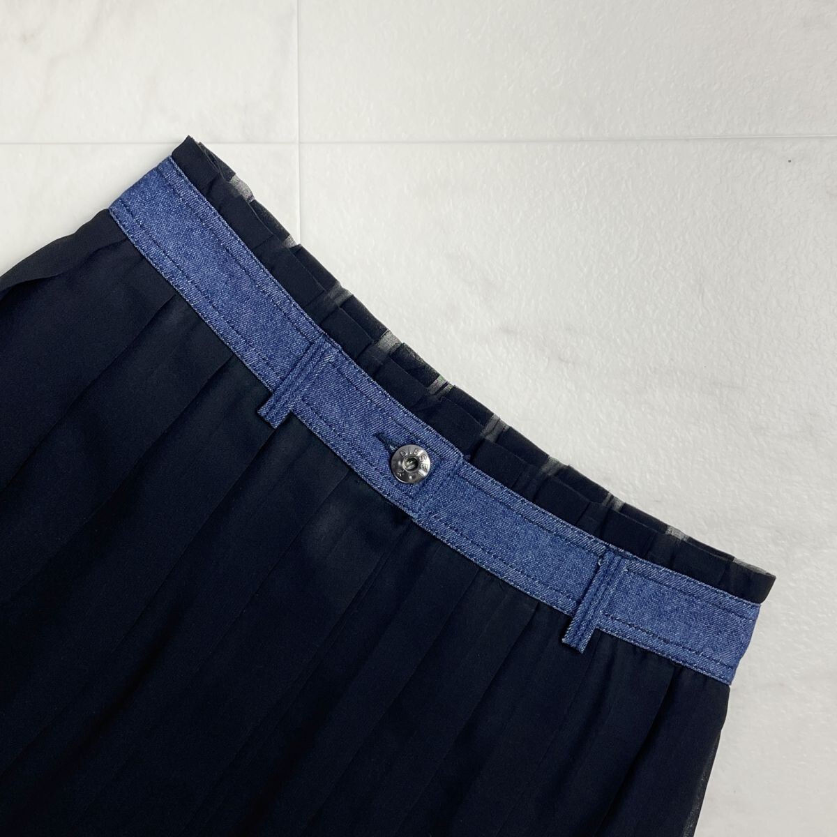 美品 DIESEL ディーゼル ウエストデニム チュールプリーツフレアラップスカート 膝丈 レディース ボトムス 黒 ブラック サイズXXS*SC381