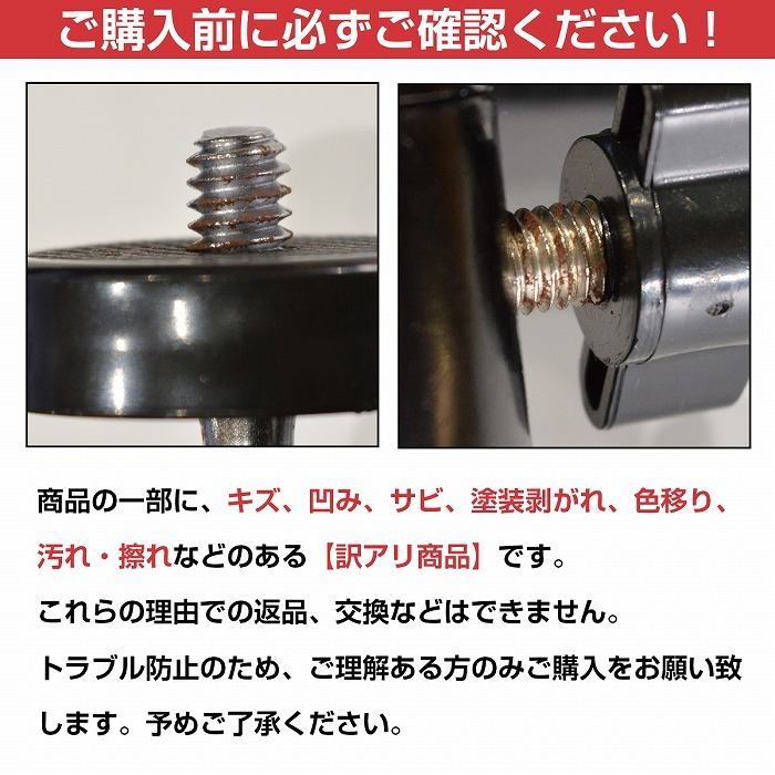 商品の一部に、キズ・へこみ・サビ・塗装剥がれ・色移り・汚れなどがある
