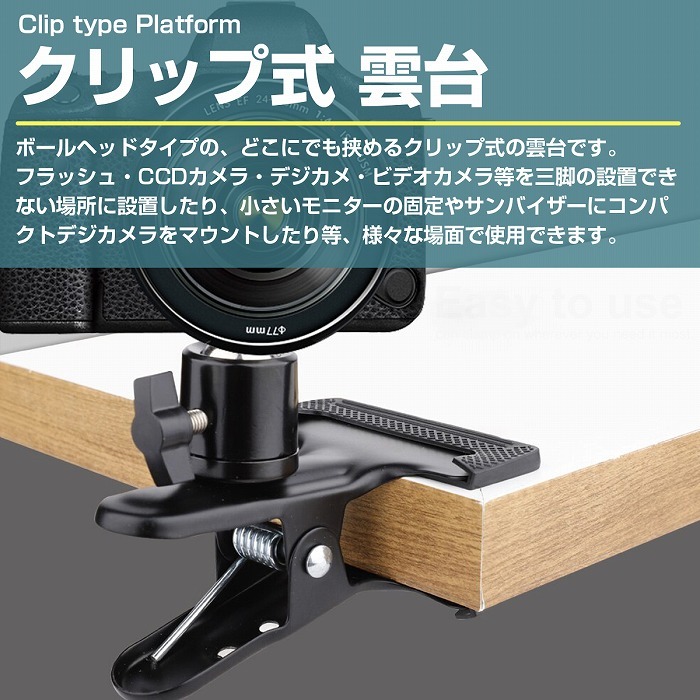 【訳アリ商品】 クリップ式 雲台 自由雲台 ボールヘッド 付き 固定 マウント デジカメ/スマホ/モニター 支柱固定 三脚ホールド