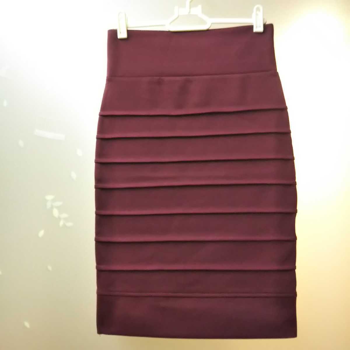 匿名/送料無料 未試着/未使用 タイトスカート Mサイズ ボルドー系 タック付