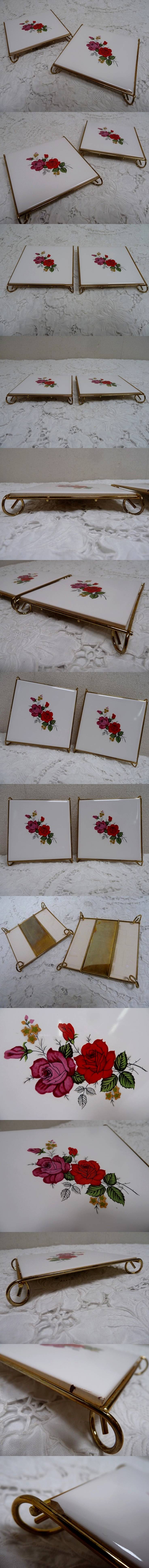 (☆BM)昭和レトロ タイル 置台 鍋敷き 2点 薔薇 バラ アンティーク調 懐かしい♪キッチン雑貨 インテリア小物