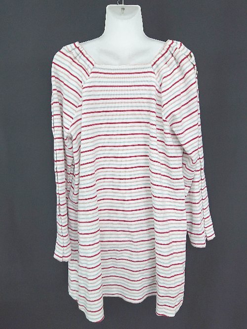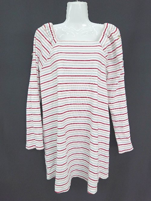◇ ⊂ NICE CLAUP ナイスクラップ ボーダー マリン 長袖 ミニ丈 ワンピース サイズF ホワイト レッド系 レディース P