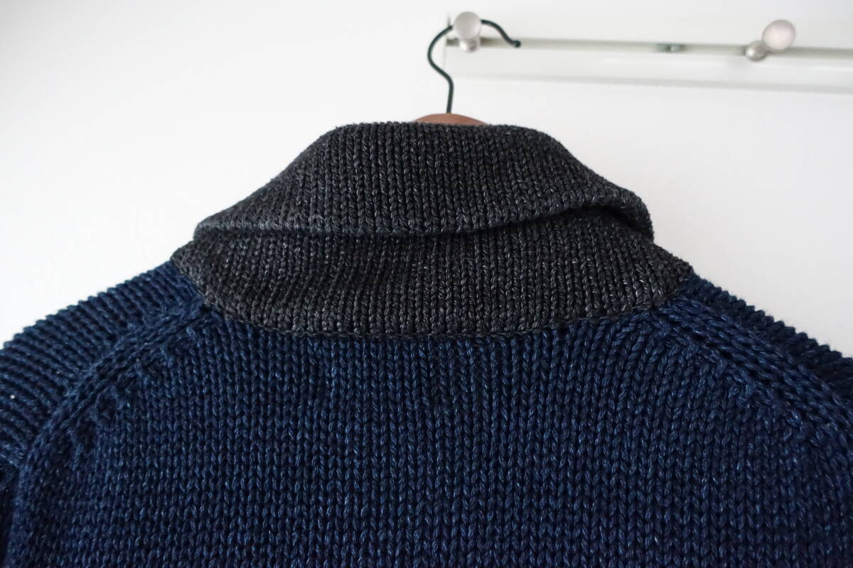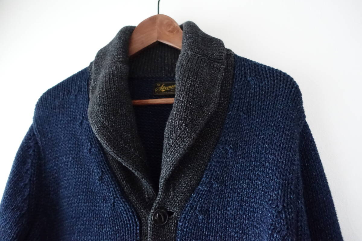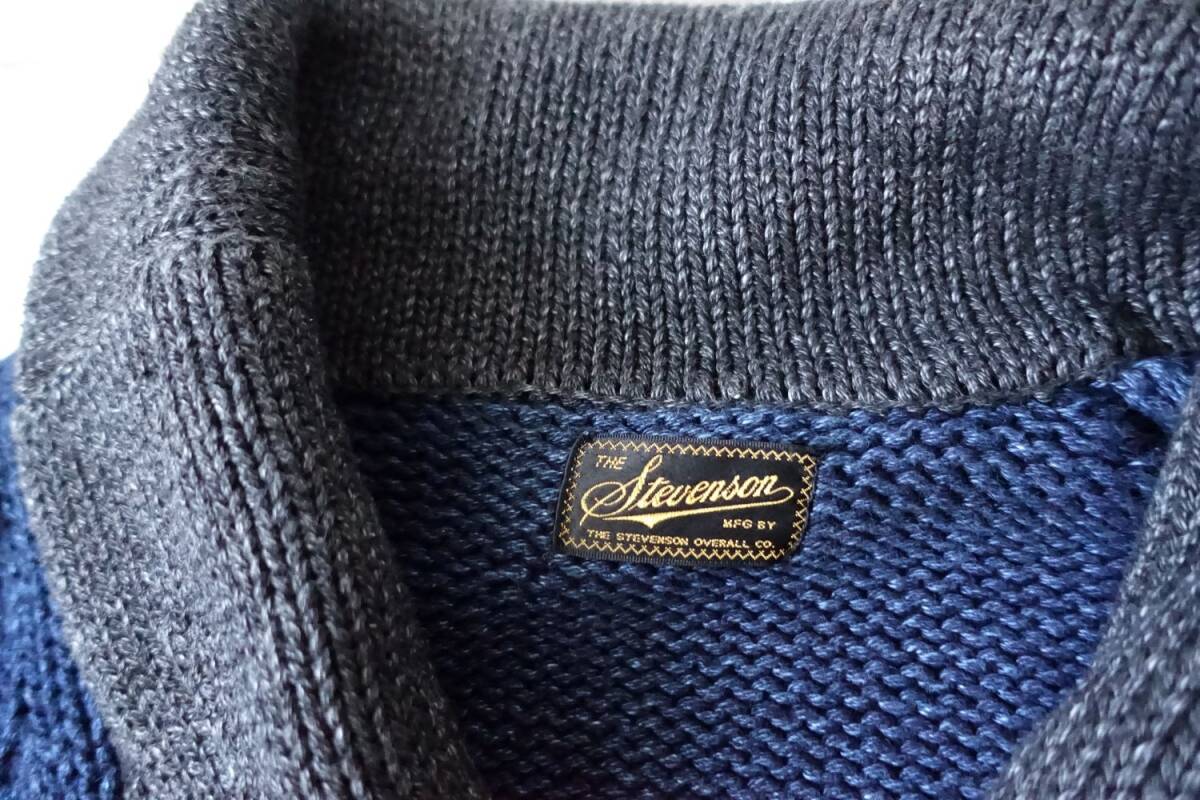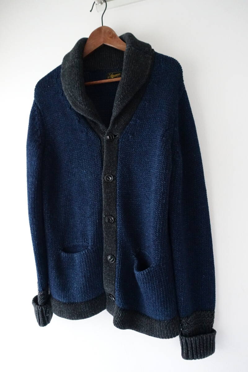 ■商品名:STEVENSON OVERALL スティーブンソン オーバーオール インディゴ染め 肉厚 ショールカラー ニット カーディガン