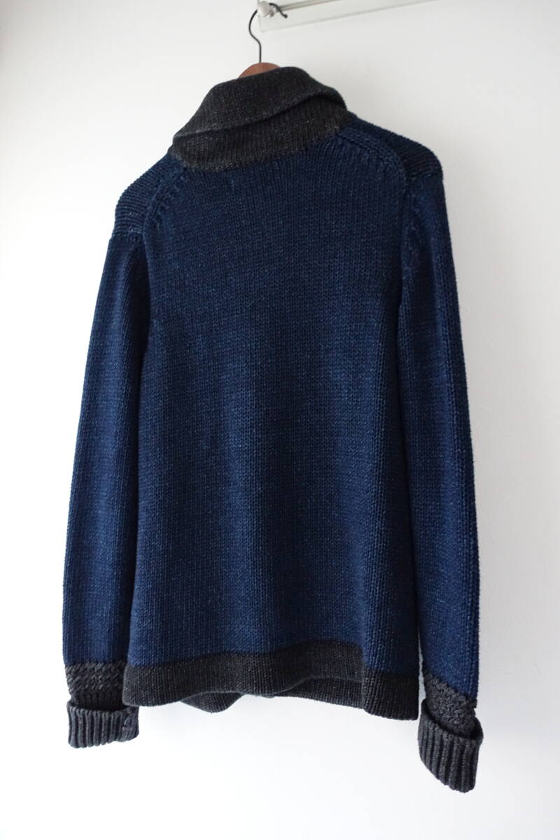 STEVENSON OVERALL スティーブンソン オーバーオール インディゴ染め 肉厚 ショールカラー ニット カーディガン Sサイズ